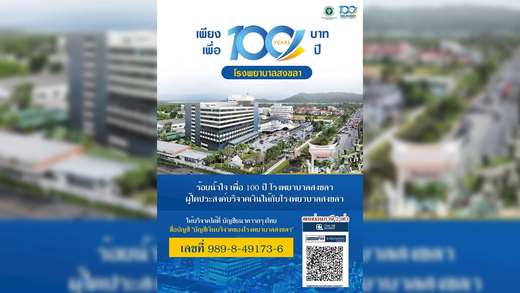 ร่วมเฉลิมฉลอง 100 ปี โรงพยาบาลสงขลา “1 ศตวรรษ สานต่อศรัทธา ก้าวสู่อนาคต” กับของที่ระลึกและกิจกรรมบริจาคสมทบทุน ลดหย่อนภาษีได้ 2 เท่า
