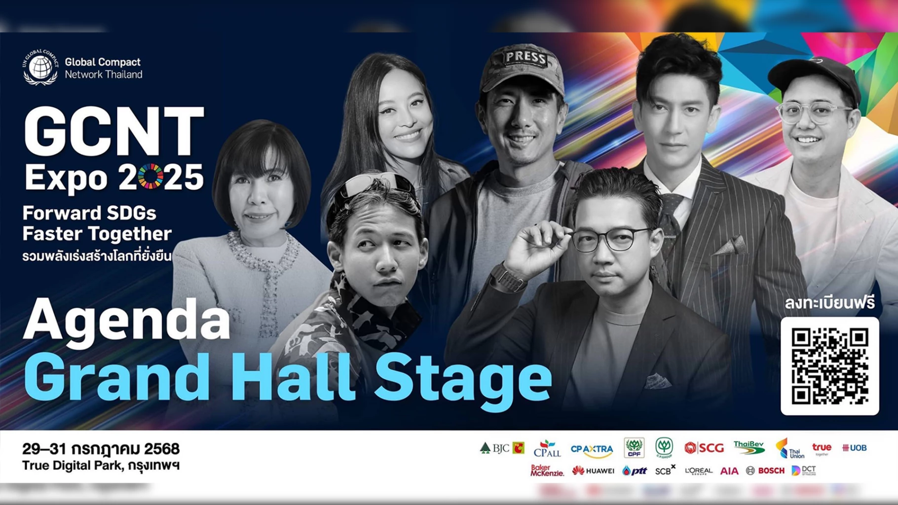 กรุงเทพฯ – ซีอีโอบริษัทชั้นนำของไทย นักคิดรุ่นใหม่ และคนดังจากหลากหลายวงการ เตรียมพร้อมขึ้นเวที GCNT EXPO 2025: Forward SDGs Faster Together – รวมพลังเร่งสร้างโลกที่ยั่งยืน ซึ่งจะจัดขึ้นระหว่างวันที่ 29–31 กรกฎาคม 2568 ณ ทรู ดิจิทัล พาร์ค กรุงเทพฯ โดยเปิดให้ประชาชนทั่วไปเข้าร่วมฟรี ไม่มีค่าใช้จ่าย
