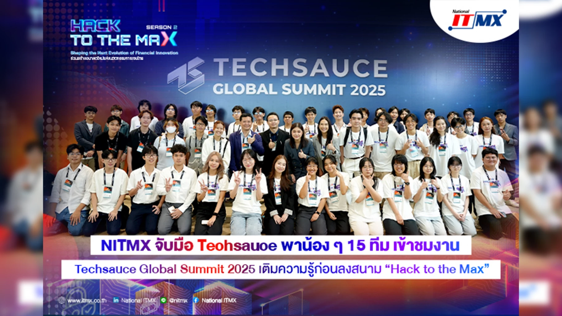 บริษัท เนชั่นแนล ไอทีเอ็มเอ๊กซ์ จำกัด (National ITMX) เดินหน้าสร้างระบบนิเวศแห่งการเรียนรู้ด้านนวัตกรรมการเงินดิจิทัล จับมือพันธมิตร “Techsauce” โดยคุณลลิภัทร เตชะวิเศษ Head of Branding Communication & Marketing ตัวแทนจาก National ITMX พร้อมด้วยคุณอรนุช เลิศสุวรรณกิจ CEO Techsauce และตัวแทนอาจารย์จากมหาวิทยาลัยพันธมิตร ได้ร่วมพาน้อง ๆ 15 ทีมสุดท้ายจากโครงการ “Hack to the Max Season 2: Shaping the Next Evolution of Financial Innovation” เข้าร่วมงาน Techsauce Global Summit 2025 ที่จัดขึ้นเมื่อวันที่ 4-6 สิงหาคม 2568 ที่ผ่านมา เพื่ออัปเดตเทรนด์เทคโนโลยีและสร้างแรงบันดาลใจก่อนลงสนามแข่งขันรอบ Hackathon