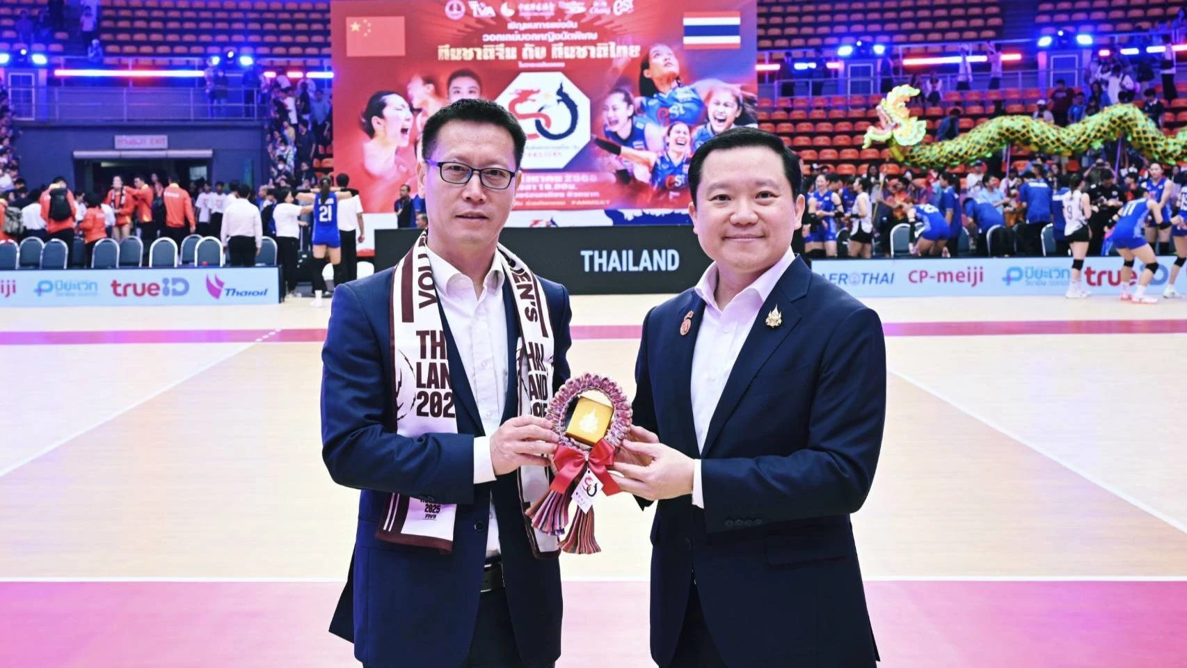 ฐาปน สิริวัฒนภักดี พร้อมคณะผู้บริหารเข้าร่วม “การแข่งขันวอลเลย์บอลหญิงนัดพิเศษ ระหว่าง ทีมสาธารณรัฐประชาชนจีน พบ ทีมชาติไทย