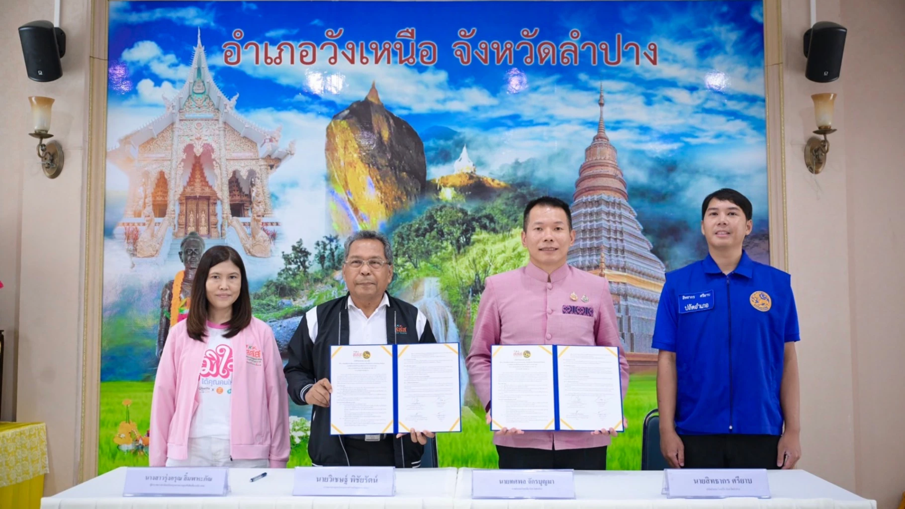 เมื่อวันที่5 กันยายน 2568 ที่ว่าการอำเภอวังเหนือ จังหวัดลำปาง สำนักงานกองทุนสนับสนุนการสร้างเสริมสุขภาพ (สสส.) และอำเภอวังเหนือ ร่วมลงนามบันทึกข้อตกลงความร่วมมือ (MOU) “การขับเคลื่อนอำเภอต้นแบบและอำเภอขยายผลการป้องกันและแก้ไขปัญหายาเสพติดชุมชนล้อมรักษ์ (CBTx)” โดยใช้กลไกคณะกรรมการพัฒนาคุณภาพชีวิตระดับอำเภอ (พชอ.)