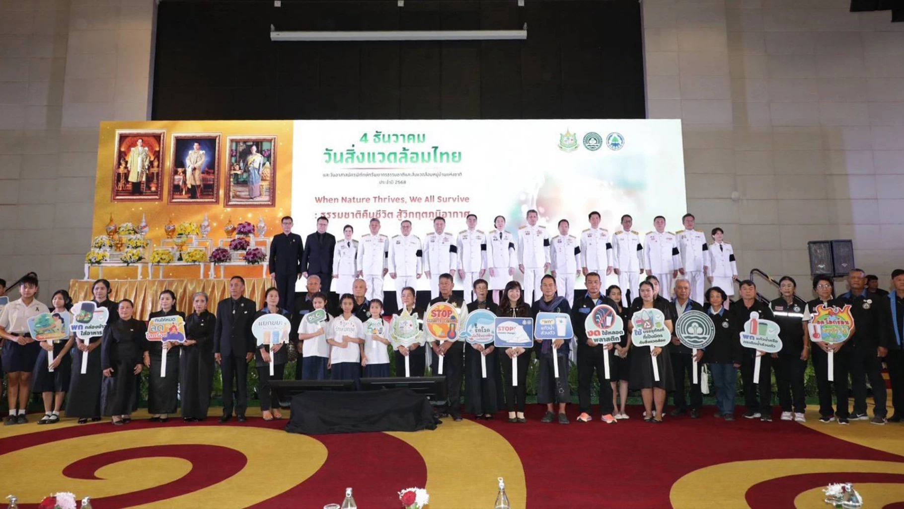 วันที่ 4 ธันวาคม 2568 กระทรวงทรัพยากรธรรมชาติและสิ่งแวดล้อม โดยกรมการเปลี่ยนแปลงสภาพภูมิอากาศและสิ่งแวดล้อม จัดงาน “วันสิ่งแวดล้อมไทย และวันอาสาสมัครพิทักษ์ทรัพยากรธรรมชาติและสิ่งแวดล้อม หมู่บ้านแห่งชาติ ประจำปี 2568” ภายใต้แนวคิด “When Nature Thrives, We All Survive: ธรรมชาติคืนชีวิต สู้วิกฤตภูมิอากาศ” สร้างความตระหนักรู้และรวมพลังความร่วมมือฟื้นฟูธรรมชาติ แก้ปัญหาวิฤตโลกร้อนอย่างยั่งยืน โดยได้รับเกียรติจาก ดร.ชญานันท์ ภักดีจิตต์ ปลัดกระทรวงทรัพยากรธรรมชาติและสิ่งแวดล้อม เป็นประธานในพิธีเปิดงาน และมีผู้เข้าร่วมจากหน่วยงานภาครัฐ ภาคเอกชน เยาวชนและเครือข่ายสถานศึกษา องค์กรระหว่างประเทศ รวมทั้งเครือข่ายอาสาสมัครพิทักษ์ทรัพยากรธรรมชาติและสิ่งแวดล้อมหมู่บ้าน เข้าร่วมกว่า 800 คน ณ ห้องประชุมวายุภักษ์ ชั้น 4 โรงแรมเซ็นทารา ไลฟ์ ศูนย์ราชการ และคอนเวนชันเซ็นเตอร์ แจ้งวัฒนะ กรุงเทพมหานคร และผ่าน Facebook Live ของกรมการเปลี่ยนแปลงสภาพภูมิอากาศและสิ่งแวดล้อม