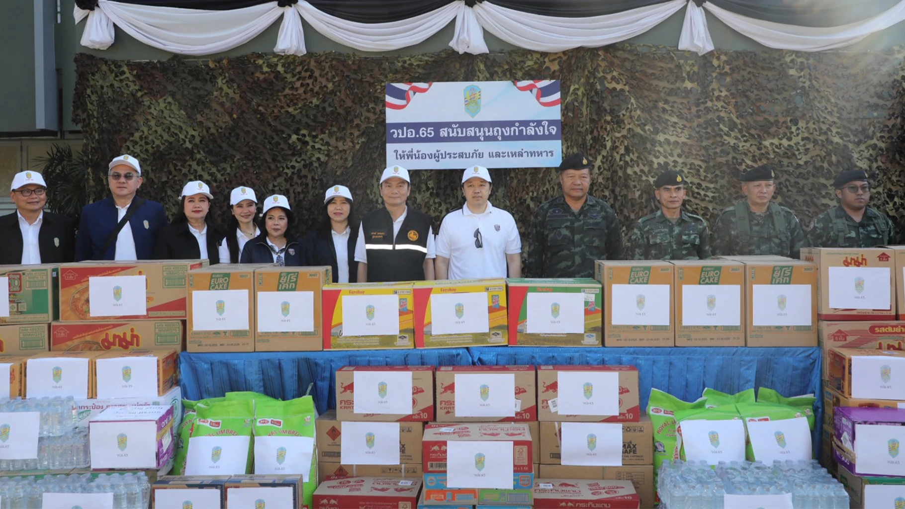 โดยกิจกรรมดังกล่าวได้รับการสนับสนุนจากนักศึกษา วปอ. รุ่นที่ 65 ร่วมกับภาคีเครือข่ายหลายแห่ง อาทิ บริษัท เอส แอนด์ พี ซินดิเคท จำกัด (มหาชน) บริษัท บิสเทค (ประเทศไทย) จำกัด บริษัท ทีคิวเอ็ม คอร์ปอร์เรชั่น จำกัด (มหาชน) บริษัท วรพงษ์ ริเวอร์ พาร์ค จำกัด บริษัท ทีทีดับบลิว จำกัด มหาวิทยาลัยเกษตรศาสตร์ บริษัท ไดมอนด์ เอสเตท จำกัด บริษัท ทรู คอร์ปอเรชั่น จำกัด (มหาชน) และบริษัท เครือเจริญโภคภัณฑ์ จำกัด ซึ่งได้ร่วมกันสนับสนุนสิ่งของอุปโภคบริโภคเพื่อช่วยเหลือกำลังพลและประชาชนในพื้นที่ประสบภัย