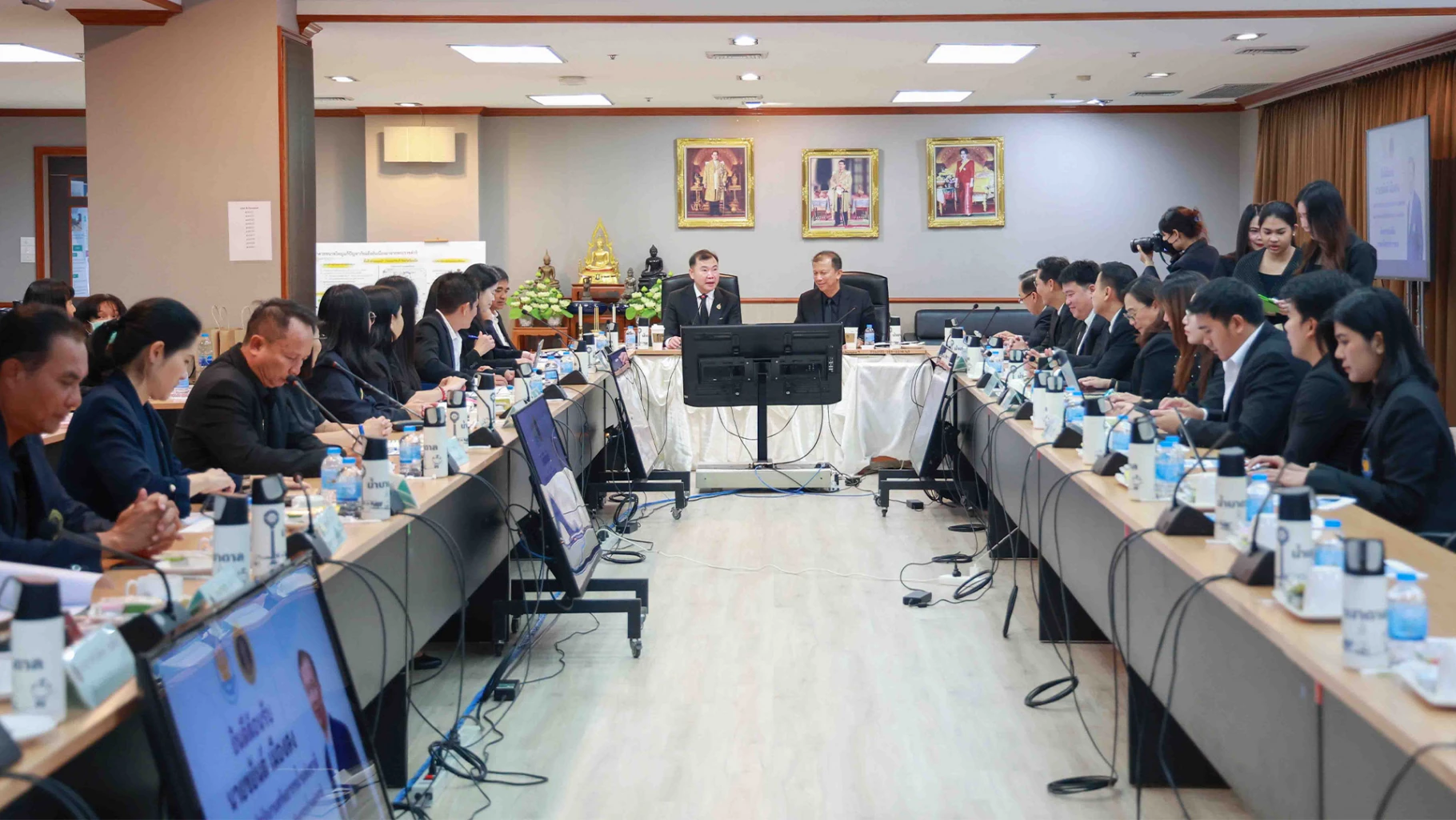 วันที่ 22 มกราคม 2569 เวลา 09.00 น. นายภาดล ถาวรกฤชรัตน์ อธิบดีกรมทรัพยากรน้ำบาดาล และนายชยันต์ เมืองสง เลขาธิการสำนักงานทรัพยากรน้ำแห่งชาติ (สทนช.) ร่วมประชุมหารือแนวทางการบริหารจัดการทรัพยากรน้ำ โดยมีนายไพฑูรย์ เก่งการช่าง รองเลขาธิการ สทนช. พร้อมคณะผู้บริหารและเจ้าหน้าที่สำนักงานทรัพยากรน้ำแห่งชาติ และนายปริญญา คุ้มสระพรม รองอธิบดีกรมทรัพยากรน้ำบาดาล พร้อมคณะผู้บริหารและเจ้าหน้าที่กรมทรัพยากรน้ำบาดาล เข้าร่วมประชุม ณ ห้องประชุม 1 ชั้น 8 อาคาร 1 กรมทรัพยากรน้ำบาดาล และถ่ายทอดสัญญาณผ่านระบบ Video Conference ไปยังสำนักทรัพยากรน้ำบาดาล เขต 1-12