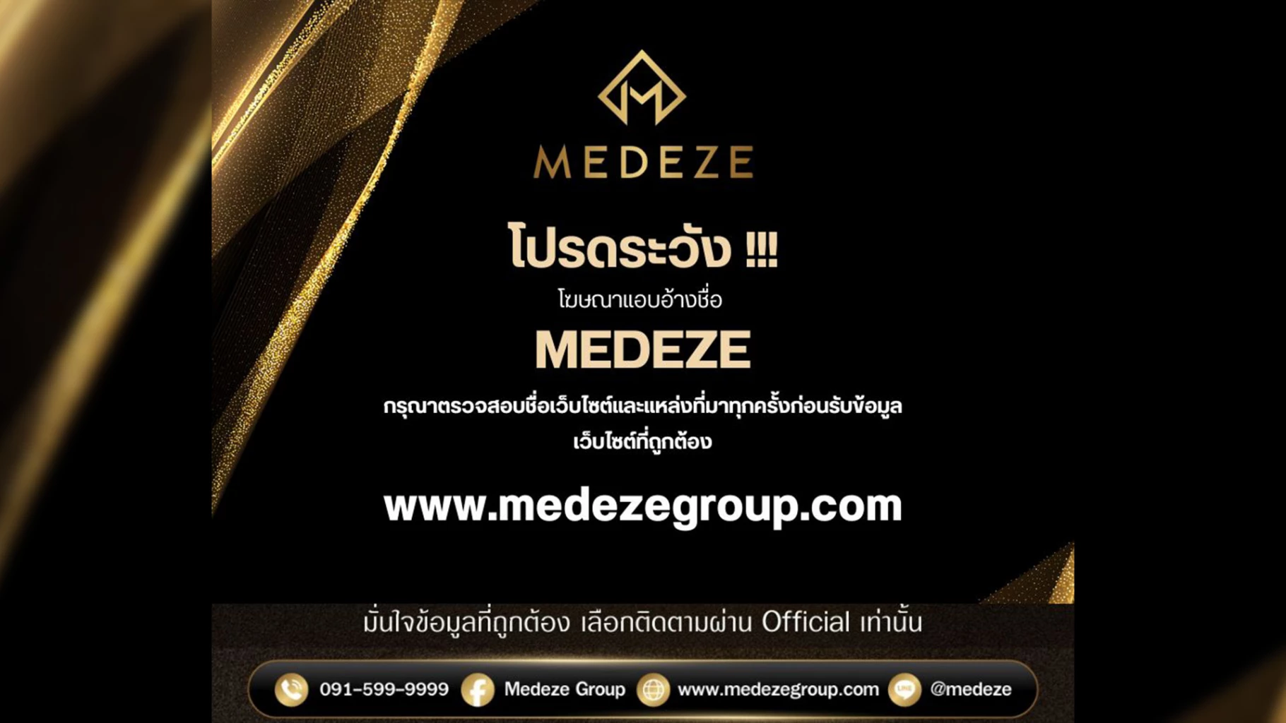 ขณะนี้ทางบริษัทฯ ยืนยันว่าไม่มีส่วนเกี่ยวข้องกับโฆษณาในลักษณะดังกล่าว และกำลังดำเนินการตามขั้นตอนทางกฎหมายอย่างถึงที่สุดเพื่อปกป้องสิทธิ์ในเครื่องหมายการค้า พร้อมขอความร่วมมือให้ผู้ใช้บริการตรวจสอบ URL เว็บไซต์ให้แน่ใจว่าเป็น www.medezegroup.com ก่อนทำรายการหรือให้ข้อมูลส่วนตัวทุกครั้ง