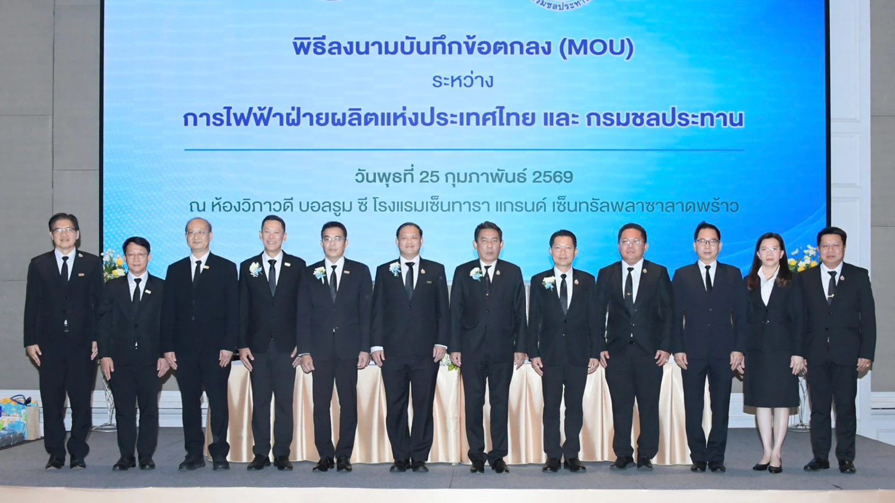 วันนี้ (25 กุมภาพันธ์ 2569) กรมชลประทาน ลงนาม 3 บันทึกข้อตกลงกับการไฟฟ้าฝ่ายผลิตแห่งประเทศไทย (กฟผ.) ได้แก่ 1) โครงการโรงไฟฟ้าพลังน้ำท้ายเขื่อนชลประทาน เขื่อนลำปาว (จ.กาฬสินธุ์) เขื่อนลำตะคอง (จ.นครราชสีมา) เขื่อนกระเสียว(จ.สุพรรณบุรี) และเขื่อนห้วยแม่ท้อ (จ.ตาก) 2) โครงการโรงไฟฟ้าพลังน้ำท้ายเขื่อนชลประทาน เขื่อนแก่งกระจาน (จ.เพชรบุรี) และเขื่อนแม่งัดสมบูรณ์ชล (จ.เชียงใหม่) และ 3) โครงการวิจัยและพัฒนาการบริหารจัดการน้ำ โดยมี นายนรินทร์ เผ่าวณิช ผู้ว่าการ กฟผ. และนายสุริยพล นุชอนงค์ อธิบดีกรมชลประทาน เป็นตัวแทนลงนาม พร้อมด้วย นายวิภู พิวัฒน์ รองผู้ว่าการผลิตไฟฟ้า นายศิริวัฒน์ เจ็ดสี รองผู้ว่าการพัฒนาโรงไฟฟ้าและพลังงานหมุนเวียน กฟผ. และนายเดช เล็กวิชัย รองอธิบดีฝ่ายบำรุงรักษากรมชลประทาน ร่วมเป็นสักขีพยาน ณ โรงแรมเซ็นทารา แกรนด์ เซ็นทรัลพลาซ่า ลาดพร้าว กรุงเทพฯ