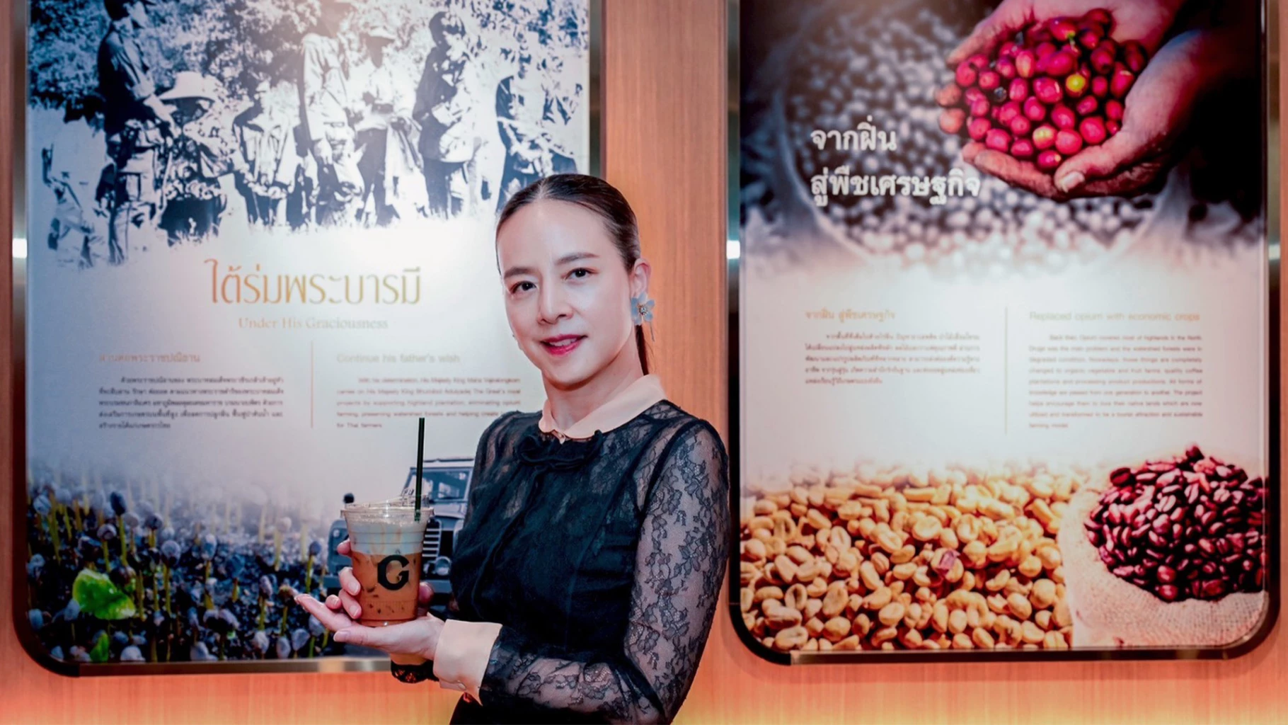 นางนวลพรรณ ล่ำซำ กรรมการ บริษัท สุวรรณชาด จำกัด ในพระบรมราชูปถัมภ์ กล่าวว่า ร้านโกลเด้น คอฟฟี่ สาขา อาคารเมืองไทย - ภัทร คอมเพล็กซ์ ได้เริ่มทดลองเปิดให้บริการแก่ประชาชน พนักงานออฟฟิศ ผู้คนวัยทำงาน มาตั้งแต่วันที่ 20 กุมภาพันธ์ 2569 โดยมีพื้นที่ให้บริการราวๆ 58 ตารางเมตร ให้บริการกาแฟ และเครื่องดื่มประเภทต่างๆ ที่มีรสชาติเป็นเอกลักษณ์เฉพาะตัว ด้วยส่วนผสมหลักจากโครงการหลวง อาทิ เมล็ดกาแฟจากโครงการหลวง น้ำผลไม้เข้มข้น และน้ำผึ้งจากดอยคำ ภายในร้านยังจำหน่ายสินค้า โอท็อปจากกลุ่มแม่บ้านเกษตรกร รวมถึงเบเกอรี่ ขนมไทยโบราณ และอาหารพร้อมทาน เช่น สลัดโรล ก๋วยเตี๋ยวลุยสวน แซนวิส ข้าวคลุกกะปิ ผลไม้พร้อมทานฯ นอกจากผลิตผลจากโครงการหลวงแล้ว โกลเด้น คอฟฟี่ ยังเลือกสรรส่วนผสมที่มีคุณภาพ เพื่อพัฒนารสชาติของเครื่องดื่มทุกเมนูให้เหมาะสมกับลูกค้าทุกกลุ่ม แต่ยังคงเอกลักษณ์ของความเป็น “โกลเด้น คอฟฟี่”