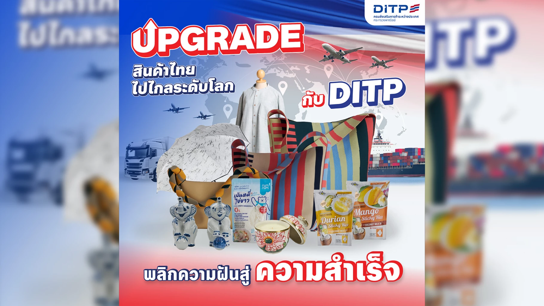 ทั้งหมดนี้ไม่ใช่แค่การส่งออกสินค้าแต่คือการนำศักยภาพไทย ไปยืนบนเวทีโลกอย่างมั่นคง DITP พร้อมพา “ของดี จาก Thai to Global” From local value to global vision พลิกโฉมสินค้าใหม่สู่แบรนด์ระดับโลก!