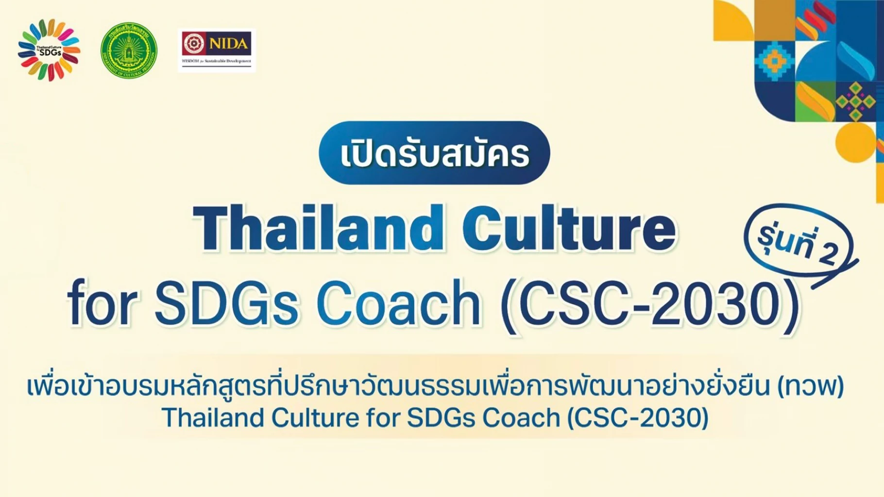 ในยุคที่ทั่วโลกกำลังมุ่งหน้าสู่การพัฒนาอย่างยั่งยืน "วัฒนธรรม" ไม่ได้ถูกจำกัดอยู่เพียงแค่ในพิพิธภัณฑ์หรือการร่ายรำอีกต่อไป แต่กำลังกลายเป็นเครื่องมือสำคัญในการขับเคลื่อนเศรษฐกิจและยกระดับคุณภาพชีวิตของผู้คน กรมส่งเสริมวัฒนธรรม กระทรวงวัฒนธรรม จึงสานต่อภารกิจสำคัญในการสร้าง "ตัวกลาง" ที่จะมาเชื่อมโยงอดีตเข้ากับอนาคต ผ่านหลักสูตร Thailand Culture for SDGs Coach (CSC-2030) รุ่นที่ 2