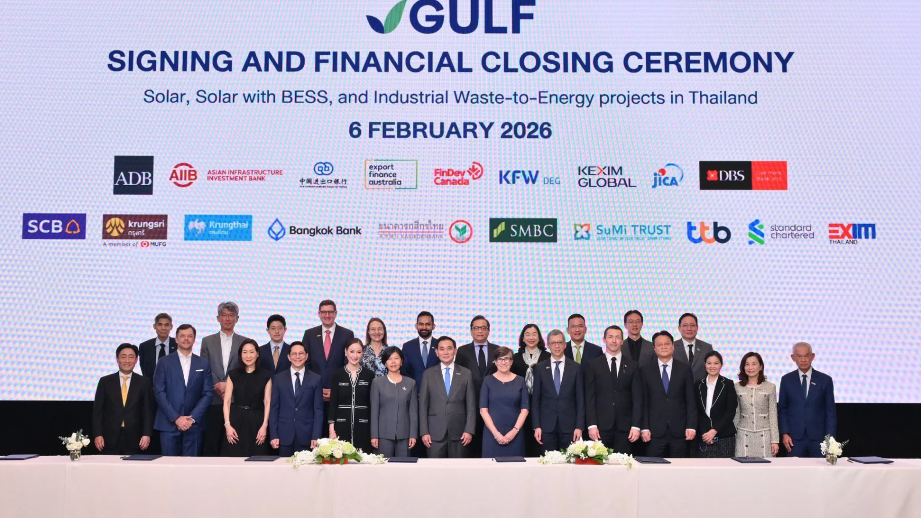 นอกจากนี้ GULF ยังเดินหน้าส่งเสริมเศรษฐกิจหมุนเวียน ผ่านการพัฒนาโครงการโรงไฟฟ้าขยะอุตสาหกรรมจำนวน 12 โครงการ ซึ่งมีกำลังการผลิตไฟฟ้าตามสัญญา 96 เมกะวัตต์ และมีกำหนดเปิดดำเนินการเชิงพาณิชย์ในปี 2570 โดยมุ่งแปรรูปขยะอุตสาหกรรมให้เป็นพลังงานอย่างยั่งยืน ลดการพึ่งพาการฝังกลบ และยกระดับการจัดการของเสียอย่างมีประสิทธิภาพ ทั้งนี้โครงการดังกล่าว ได้รับวงเงินกู้ระยะยาวรวมประมาณ 17,000 ล้านบาท (หรือประมาณ 550 ล้านดอลลาร์สหรัฐ) จากกลุ่มสถาบันการเงินเพื่อการพัฒนา ได้แก่ ADB และ AIIB รวมถึงสถาบันการเงินพาณิชย์ชั้นนำ อาทิ ธนาคารไทยพาณิชย์, ธนาคารกรุงศรีอยุธยา, ธนาคารทหารไทยธนชาต, Sumitomo Mitsui Banking Corporation, Bangkok Branch และ Standard Chartered Bank