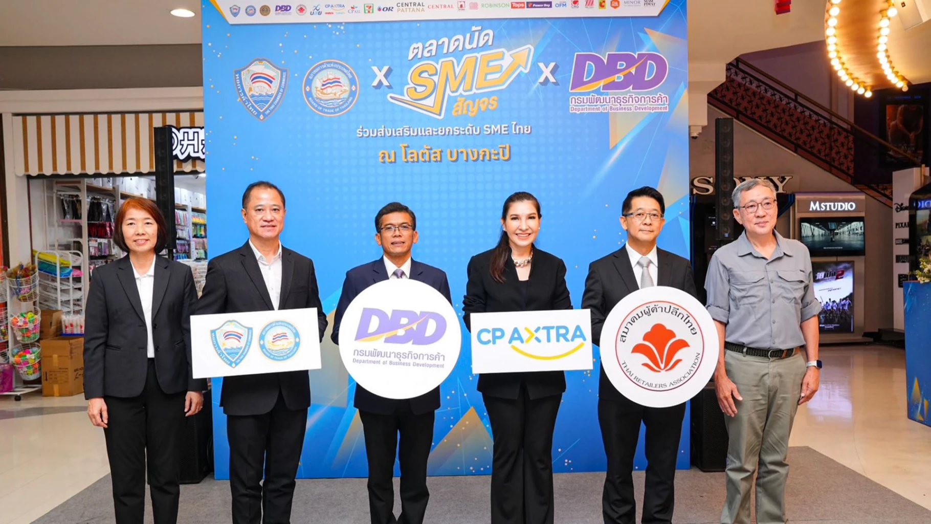 โดย ซีพี แอ็กซ์ตร้า ร่วมกับ กระทรวงพาณิชย์ โดยกรมพัฒนาธุรกิจการค้า หอการค้าและสภาหอการค้าแห่งประเทศไทย และ สมาคมผู้ค้าปลีกไทย จัดงาน “ตลาดนัด SME สัญจร” ครั้งที่ 3 ประจำปี 2567 ณ โลตัส สาขาบางกะปิ วันที่ 25-27 ตุลาคม 2567 โดยมีร้านค้าผู้ประกอบการ ภายใต้การดูแลของกรมพัฒนาธุรกิจการค้า มาร่วมออกบูธจำหน่ายสินค้าท้องถิ่นคุณภาพดีและผลิตภัณฑ์ชุมชน นอกจากนี้ ยังเปิดเวทีให้ผู้ประกอบการรายย่อยได้เจรจาจับคู่ธุรกิจกับห้างค้าส่ง-ค้าปลีก ในเครือข่ายของสมาคมผู้ค้าปลีกไทยอีกด้วย โดยงานนี้ได้รับเกียรติจาก ท่านสถาพร ร่วมนาพะยา รองอธิบดีกรมพัฒนาธุรกิจการค้า กระทรวงพาณิชย์ คุณกมล