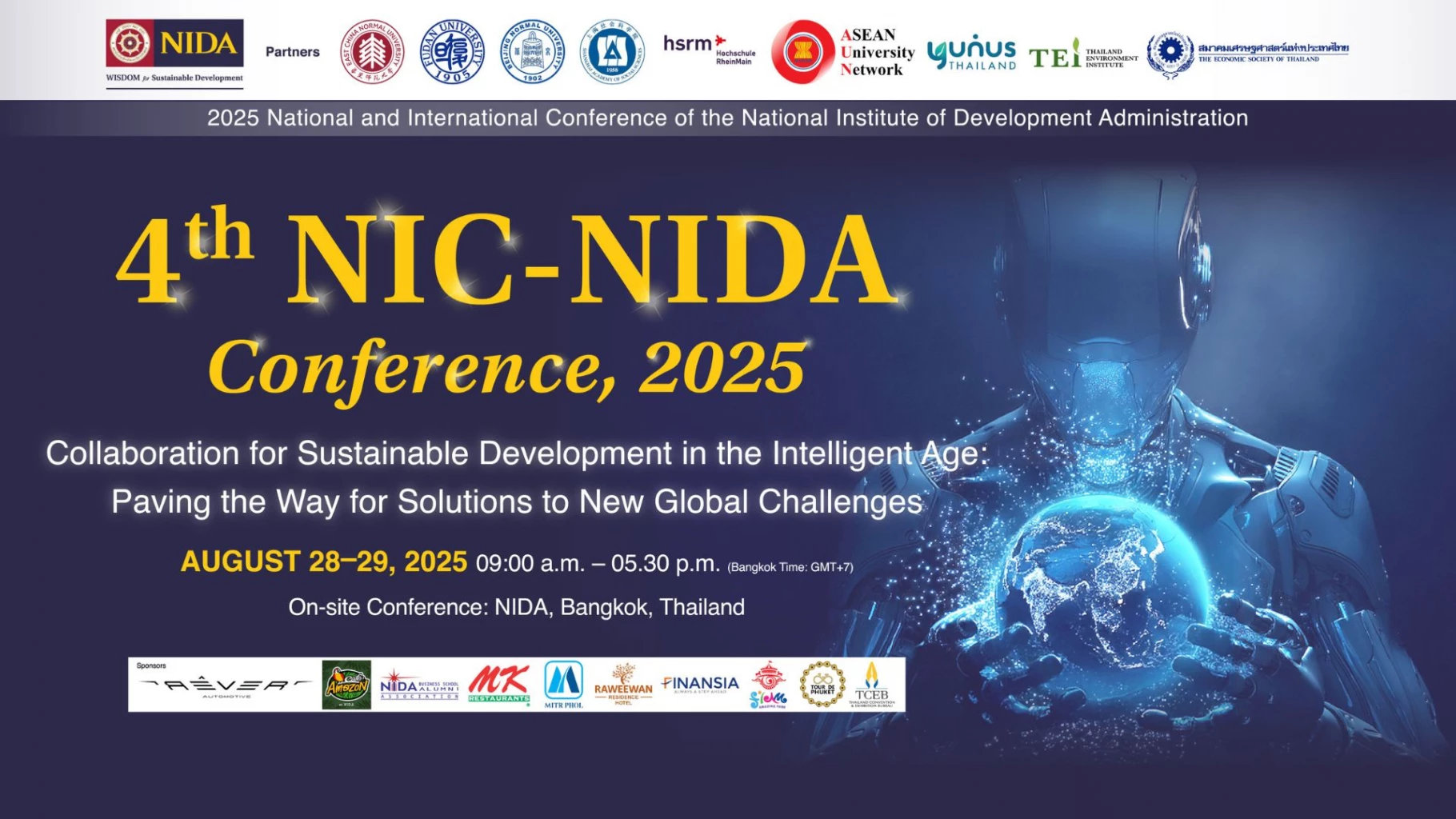 สถาบันบัณฑิตพัฒนบริหารศาสตร์ (NIDA) เตรียมพร้อมจัดงานประชุมวิชาการระดับชาติ และระดับนานาชาติ ประจำปี 2568 (2025 National and International Conference of The National Institute of Development Administration) หรืองาน 4th NIC – NIDA Conference, 2025 ภายใต้หัวข้อ “Collaboration for Sustainable Development in the Intelligent Age: Paving the Way for Solutions to New Global Challenges” ในวันพฤหัสบดีที่ 28 และวันศุกร์ที่ 29 สิงหาคม 2568 ระหว่างเวลา 09.00 – 17.30 น. ณ หอประชุมเฉลิมพระเกียรติฯ สถาบันบัณฑิตพัฒนบริหารศาสตร์ ถนนเสรีไทย กรุงเทพฯ