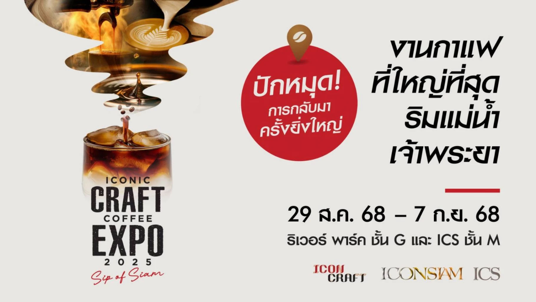 ไอคอนสยามปักหมุด 'Global Coffee Destination'จัด “ICONIC CRAFT COFFEE EXPO 2025” งานกาแฟที่ใหญ่ที่สุดริมแม่น้ำเจ้าพระยาเตรียมพบกับที่สุดของกาแฟไทยและกาแฟโลก พร้อมสัมผัสวัฒนธรรมกาแฟครบทุกมิติระหว่างวันที่ 29 สิงหาคม – 7 กันยายน 2568