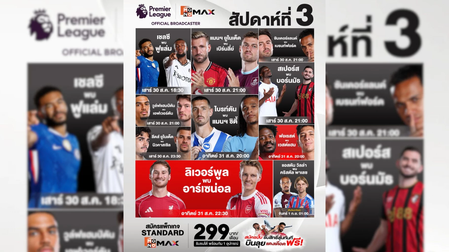เรียกว่าสัปดาห์นี้ ดุเด็ด เผ็ดมัน ครบทุกอารมณ์ ตั้งแต่ดาร์บี้ลอนดอนยันบิ๊กแมตช์แดงเดือดคนละสาย! แฟนบอลพรีเมียร์ลีกห้ามพลาดเด็ดขาด! รับชมการถ่ายทอดทาง Monomax กับแพ็กเกจ Monomax Standard ได้ที่ https://www.monomax.me/qr/vXt4 ราคาสุดคุ้มรายเดือน 299 บาทเท่านั้น!!!