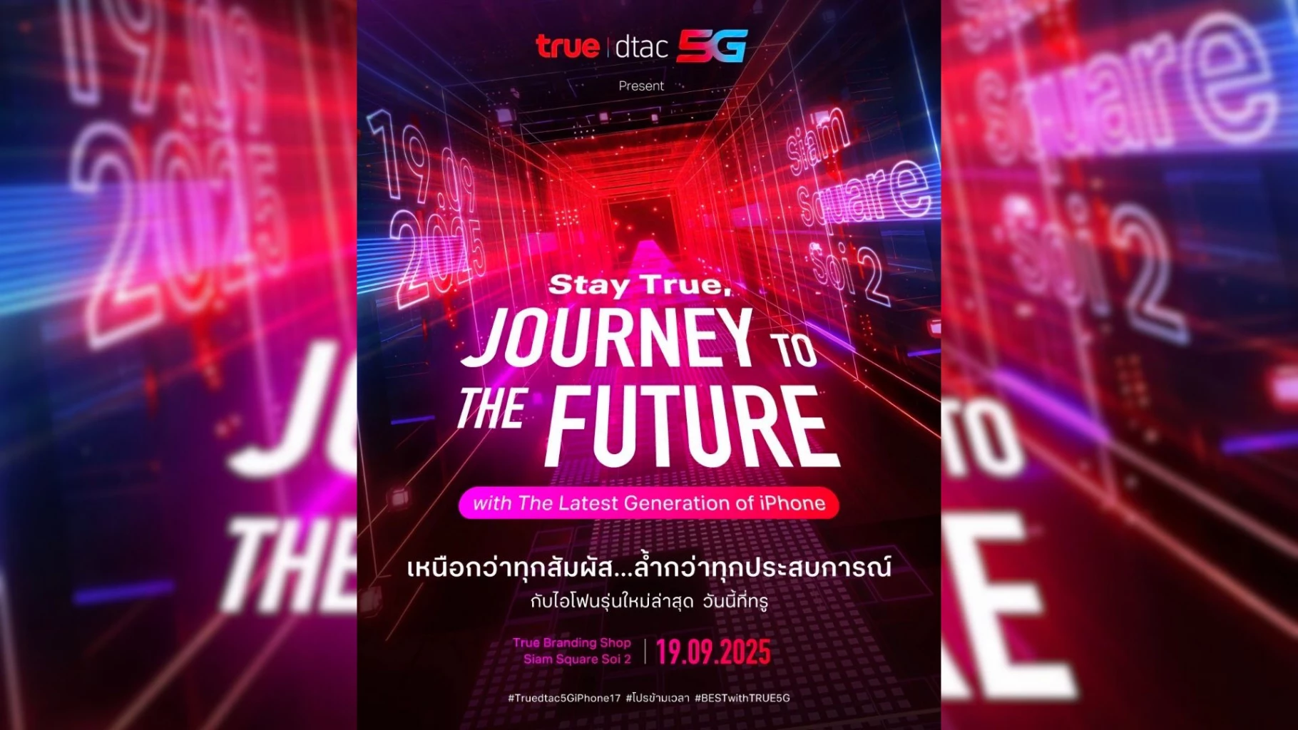 มาร่วมอยู่ในโมเม้นต์สุดยิ่งใหญ่ กับทรู ผู้นำ iPhone เครื่องแรกเข้าสู่ไทย พร้อมมอบ ‘โปรข้ามเวลา’ โปร iPhone ที่ดีที่สุด เหนือกว่า ตัวจริง แลกจริง กับความเหนือกว่าทุกสัมผัส…ล้ำกว่าทุกประสบการณ์กับ iPhone 17 Series กับทรู ดีแทค เครือข่าย 5G ที่ล้ำไปสู่อนาคต ในงาน “Stay True, JOURNEY to the FUTURE with the Latest Generation of iPhone”