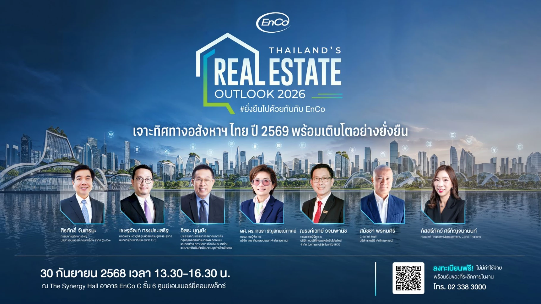 บริษัท เอนเนอร์ยี่ คอมเพล็กซ์ จำกัด (EnCo) ขอเชิญผู้สนใจเข้าร่วมงานสัมมนา “Thailand’s Real Estate Outlook 2026: เจาะทิศทางอสังหาฯ ไทย ปี 2569 พร้อมเติบโตอย่างยั่งยืน” งานสัมมนาที่จะพาคุณไปพบกับข้อมูลและมุมมองเชิงลึกจากผู้เชี่ยวชาญด้านเศรษฐกิจและอสังหาริมทรัพย์ชั้นนำของประเทศ เพื่อมองเห็นโอกาสและแนวโน้มใหม่ ๆ ของตลาดอสังหาริมทรัพย์ไทย เหมาะสำหรับผู้ประกอบการ นักลงทุน นักศึกษา และบุคคลทั่วไปที่สนใจติดตามทิศทางเศรษฐกิจและอสังหาฯ ไทยในอนาคต โดยงานจะจัดขึ้นในวันอังคารที่ 30 กันยายน 2568 เวลา 13.30 – 16.30 น. ณ The Synergy Hall อาคาร EnCo C ชั้น 6 ศูนย์เอนเนอร์ยี่คอมเพล็กซ์ ถนนวิภาวดีรังสิต