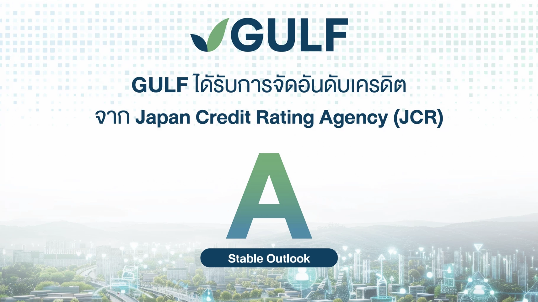 GULF ได้รับการจัดอันดับเครดิตองค์กรจาก JCR ระดับ “A” แนวโน้ม “คงที่” (Stable) ตอกย้ำศักยภาพและความแข็งแกร่งทางธุรกิจในระดับสากล