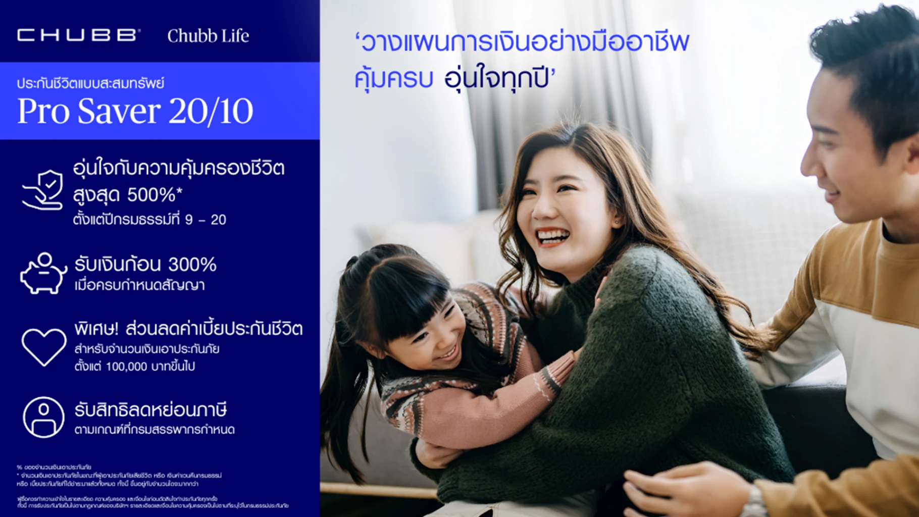 ชับบ์ ไลฟ์ ประกันชีวิต เปิดตัว 2 ผลิตภัณฑ์ประกันสะสมทรัพย์ใหม่ล่าสุด “โปร เซฟเวอร์ 20/10” และ “สตาร์ต เซฟเวอร์ 25/15” เพื่อตอบสนองความต้องการของคนไทยที่กำลังมองหาตัวช่วยในการวางแผนการเงินอย่างมืออาชีพ ที่มอบความคุ้มครองที่ครอบคลุม ผลประโยชน์ที่คุ้มค่า และการวางแผนภาษีโค้งสุดท้ายก่อนสิ้นปี