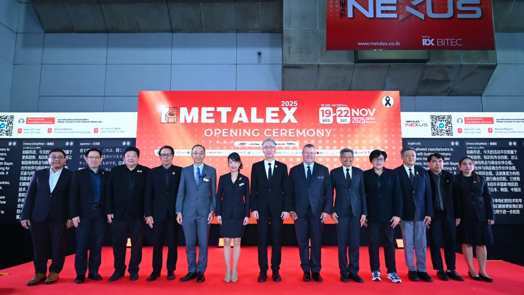 พิธีเปิดงาน METALEX 2025 ได้รับเกียรติจาก ดร. ณัฐพล รังสิตพล ปลัดกระทรวงอุตสาหกรรม เป็นประธานในพิธี พิธีการเริ่มจากการแสดงเทิดพระเกียรติ โดยคณะลิเก ไชยา มิตรชัย จากนั้นประธานในพิธีได้แสดงปาฐกถาพิเศษ หัวข้อ “อนาคตอุตสาหกรรมไทยใต้แสงแห่งนวัตกรรม” ดร.ณัฐพล กล่าวชื่นชมงานที่จัดขึ้นทุกปีอย่าง METALEX ว่าเป็นเวทีระดับโลก ทำให้ไทยเป็นผู้นำด้านอุตสาหกรรม และทุกปีมีนวัตกรรมใหม่ ๆ ทั้งในผลิตภัณฑ์และกระบวนการผลิต งานนี้ช่วยให้ผู้ประกอบการเห็นโอกาสในการพัฒนานวัตกรรมของตนเอง พร้อมกับย้ำว่ากระทรวงอุตสาหกรรมสนับสนุนนโยบายให้นำเทคโนโลยีและนวัตกรรมมาใช้ควบคู่กับความยั่งยืน 4 มิติ ได้แก่ การทำกำไร การอยู่ร่วมกับชุมชน การปฏิบัติตามกติกาสากล และการกระจายรายได้ ทั้งหมดต้องทำอย่างคุ้มค่าและสามารถแข่งขันได้ กระทรวงมีหน้าที่ช่วยให้ผู้ประกอบการเติบโตอย่างเป็นธรรมและแข็งแรงในเวทีการแข่งขันระดับโลก