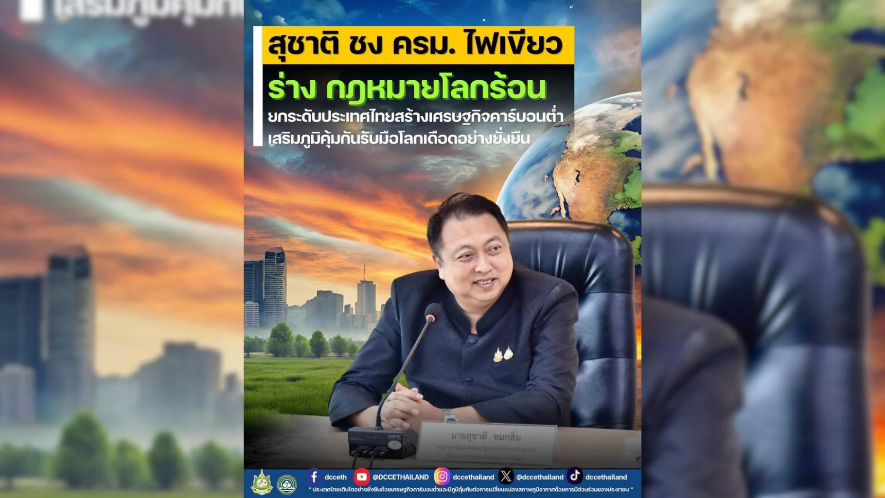 สุชาติ ชง ครม. ไฟเขียว ร่าง กฎหมายโลกร้อน ยกระดับประเทศไทยสร้างเศรษฐกิจคาร์บอนต่ำ เสริมภูมิคุ้มกันรับมือโลกเดือดอย่างยั่งยืน