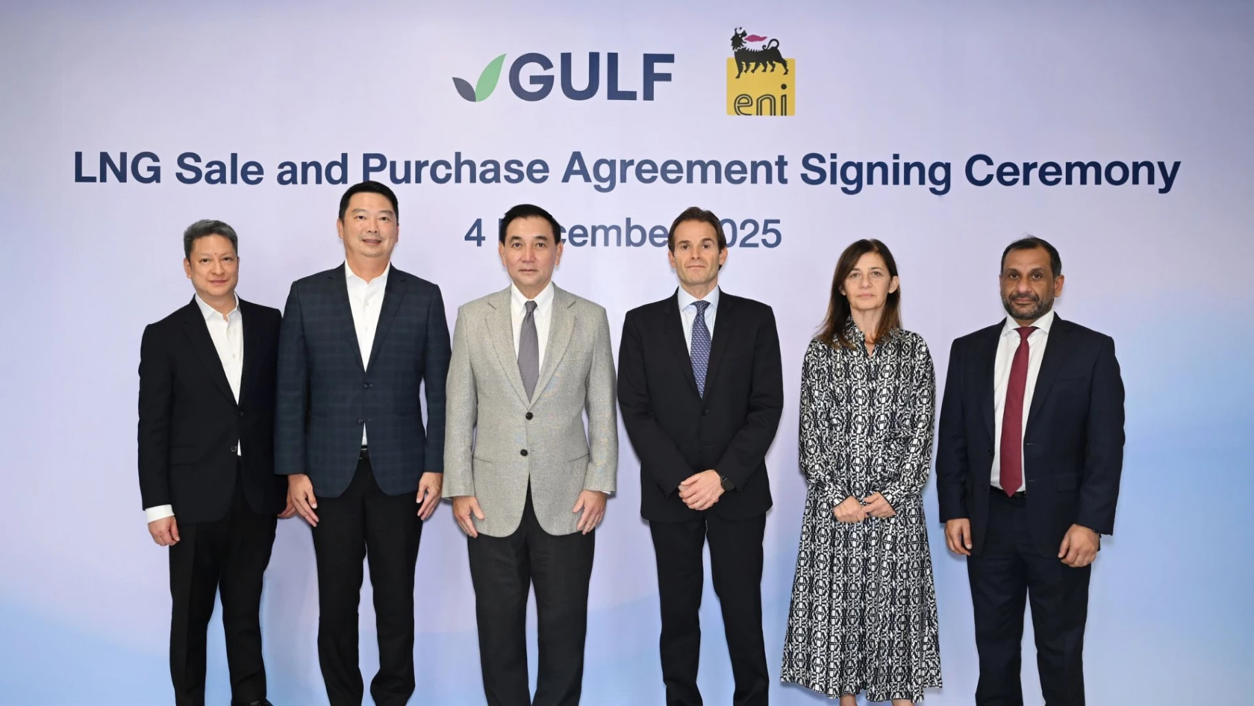 ที่ผ่านมา กลุ่มบริษัท GULF ได้รับใบอนุญาตการเป็นผู้ประกอบการจัดหาและค้าส่งก๊าซธรรมชาติเหลว (LNG Shipper License) จากสำนักงานคณะกรรมการกำกับกิจการพลังงาน (กกพ.) ในปริมาณไม่เกิน 7.8 ล้านตันต่อปี เพื่อใช้เป็นเชื้อเพลิงในการผลิตไฟฟ้าของกลุ่มบริษัทฯ และได้ดำเนินธุรกิจนำเข้าก๊าซธรรมชาติเหลวมาตั้งแต่ปี 2567 ซึ่งการลงนามสัญญาจัดหาก๊าซธรรมชาติเหลวระหว่าง GULF และ Eni ในครั้งนี้ สอดคล้องกับแผนการจัดหาก๊าซธรรมชาติของประเทศ ซึ่งจะช่วยกระจายแหล่งที่มาของการนำเข้าก๊าซธรรมชาติเหลว เพิ่มเสถียรภาพด้านราคาและปริมาณ ตลอดจนเสริมสร้างความมั่นคงทางพลังงานให้กับประเทศในระยะยาว ช่วยสนับสนุนเสถียรภาพทางเศรษฐกิจและการเติบโตของประเทศโดยรวมต่อไป
