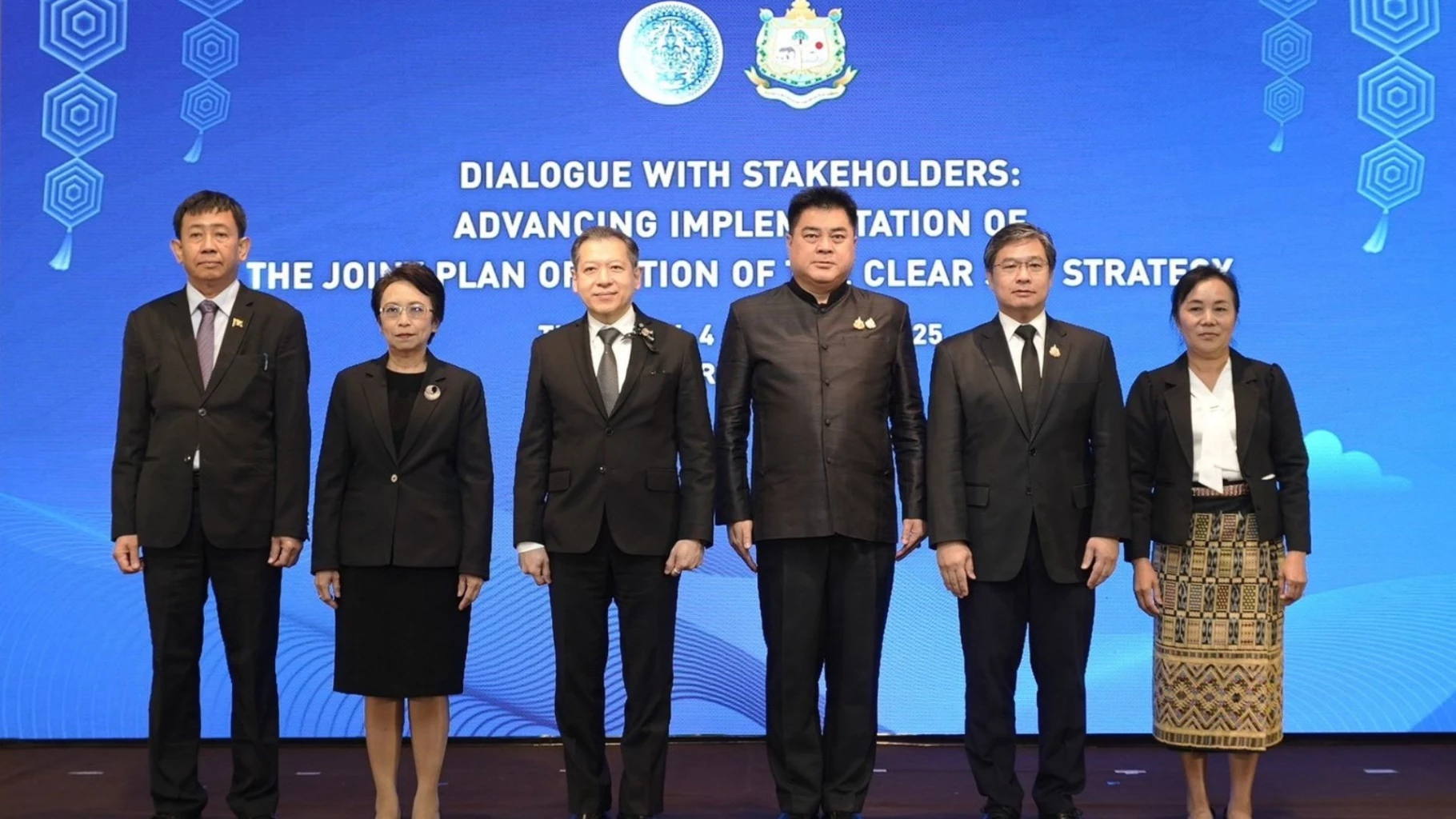 นางสาวปรีญาพร สุวรรณเกษ รองปลัดกระทรวงทรัพยากรธรรมชาติและสิ่งแวดล้อม นายซาน อู อธิบดีกรมอนุรักษ์สิ่งแวดล้อมของเมียนมา และนางเตือนจิต อลุนละสี รองอธิบดีสถาบันด้านชีวเทคโนโลยีและระบบนิเวศน์ของ สปป.ลาว ได้กล่าวรายงานความคืบหน้าของการดำเนินงานในการแก้ไขปัญหาหมอกควันข้ามแดนในช่วงปีที่ผ่านมา รวมถึงผ่านยุทธศาสตร์ฟ้าใส และการเตรียมการที่เกี่ยวข้องในกรณีเกิดปัญหาหมอกควันในช่วงต้นปี 2569