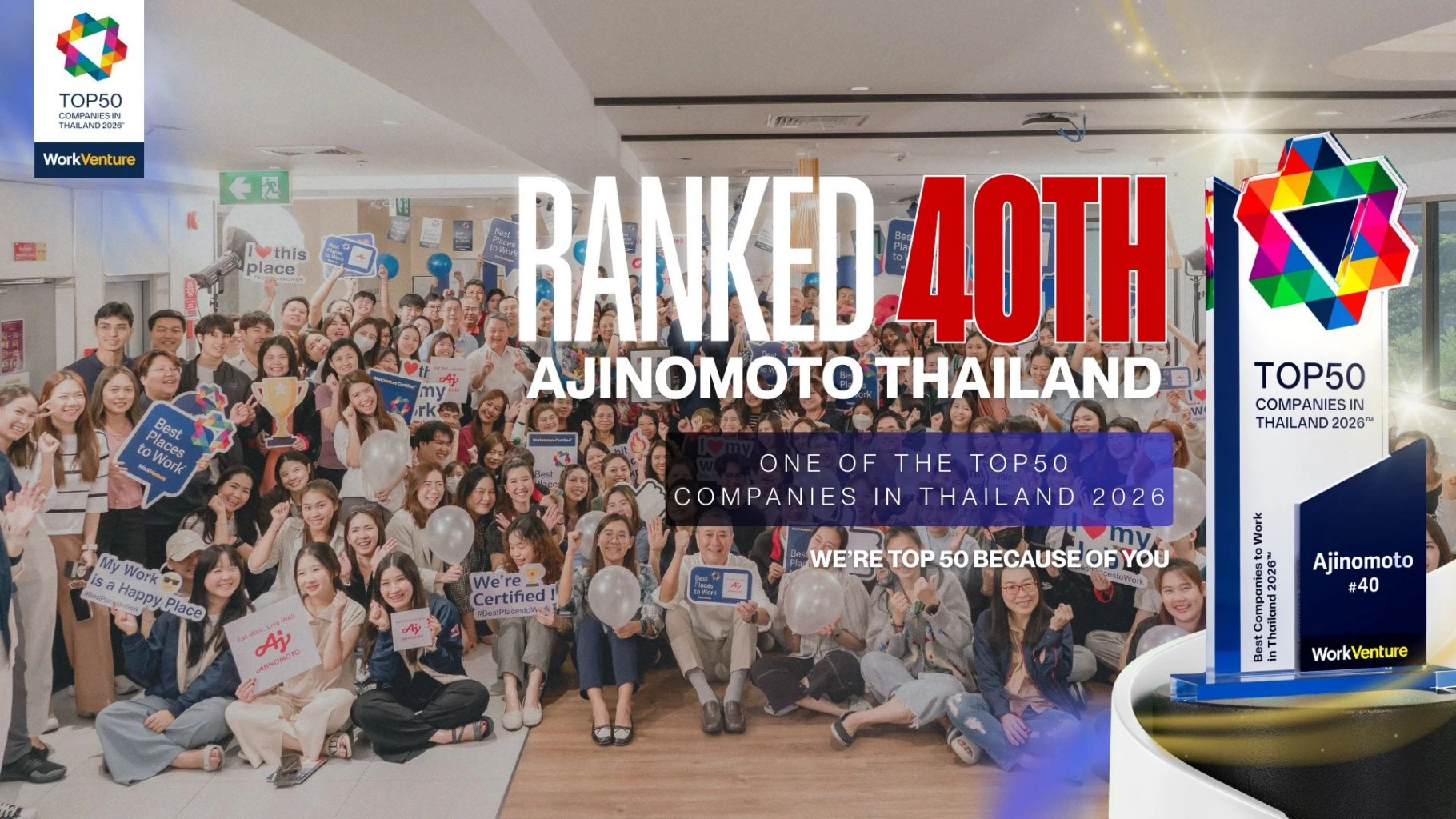 บริษัท อายิโนะโมะโต๊ะ (ประเทศไทย) จำกัด องค์กรชั้นนำระดับโลกด้านอาหารและโภชนาการ ภายใต้ปรัชญา “กินดี มีสุข (Eat Well, Live Well.)” สร้างอีกหนึ่งความภาคภูมิใจ ด้วยการคว้ารางวัล “Top50 Companies in Thailand 2026™” ติดอันดับที่ 40 บริษัทที่คนรุ่นใหม่อยากร่วมงานด้วยมากที่สุด โดย WorkVenture จากกว่า 720 องค์กรชั้นนำ ผ่านการสำรวจความคิดเห็นของกลุ่มคนรุ่นใหม่อายุ 22–35 ปี ในเขตกรุงเทพฯ และปริมณฑล นับเป็นปีแรกที่อายิโนะโมะโต๊ะได้รับรางวัลอันทรงคุณค่านี้ สะท้อนถึงความสำเร็จในการปรับตัวขององค์กรให้สอดรับกับโลกการทำงานยุคใหม่ โดยให้ความสำคัญกับ Well-being ของพนักงานอย่างรอบด้าน ควบคู่ไปกับโอกาสในการเติบโตในสายอาชีพ และการสร้างประสบการณ์การทำงานที่มีความหมาย