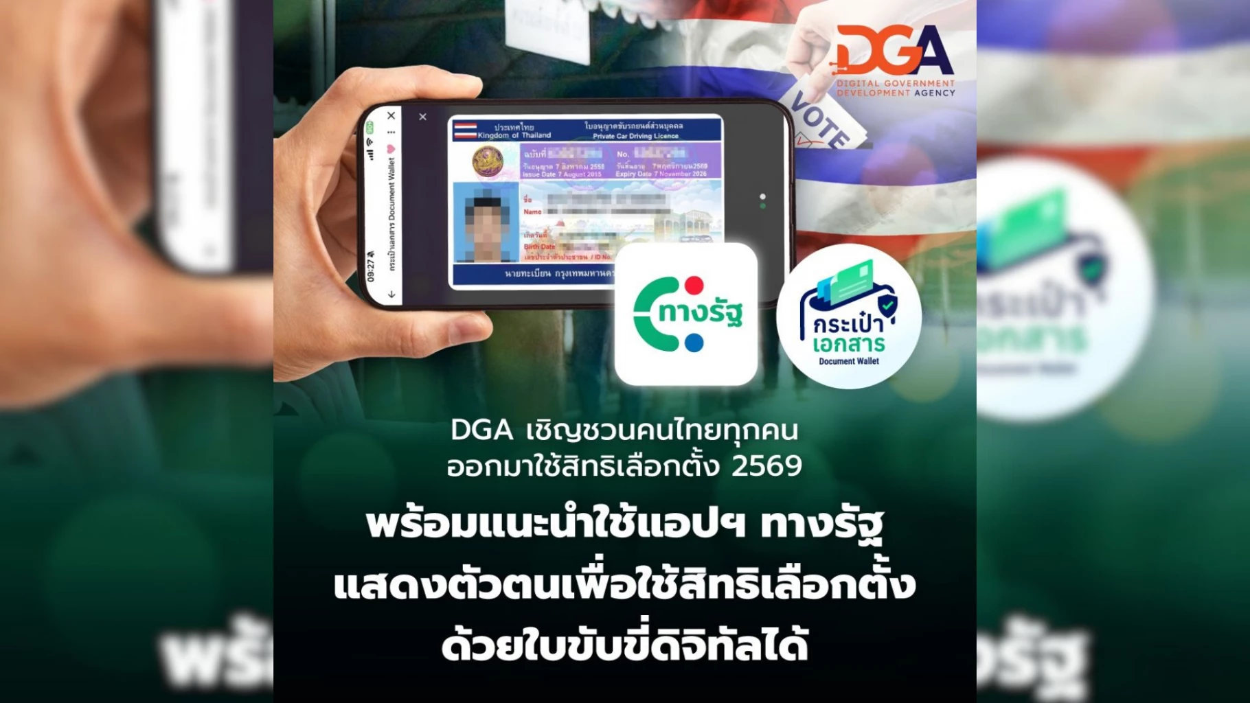 DGA ชวนคนไทยใช้สิทธิเลือกตั้ง 69 โชว์ใบขับขี่ดิจิทัลผ่านทางรัฐ