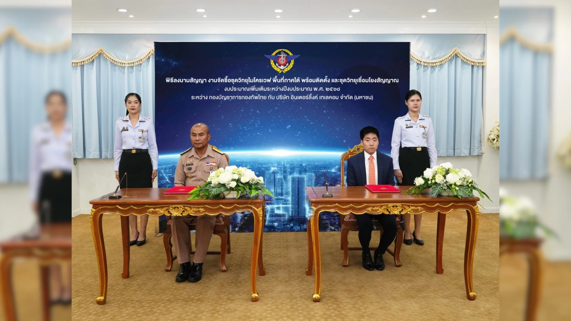 สำหรับการลงนามสัญญาจัดซื้อและติดตั้งชุดวิทยุไมโครเวฟ พร้อมชุดเชื่อมโยงสัญญาณในพื้นที่ภาคใต้ สำหรับกองบัญชาการกองทัพไทย โดยเป็นส่วนหนึ่งภายใต้งบประมาณเพิ่มเติมประจำปี 2568 ซึ่งมีมูลค่าโครงการรวมทั้งสิ้น 99,128,000 บาท โดยมีวัตถุประสงค์เพื่อยกระดับประสิทธิภาพระบบการสื่อสาร ระบบเรดาร์ และการตรวจจับพื้นที่ยุทธศาสตร์สำคัญ ให้มีความทันสมัยและพร้อมรองรับภารกิจด้านความมั่นคงของประเทศได้อย่างมีประสิทธิภาพสูงสุด