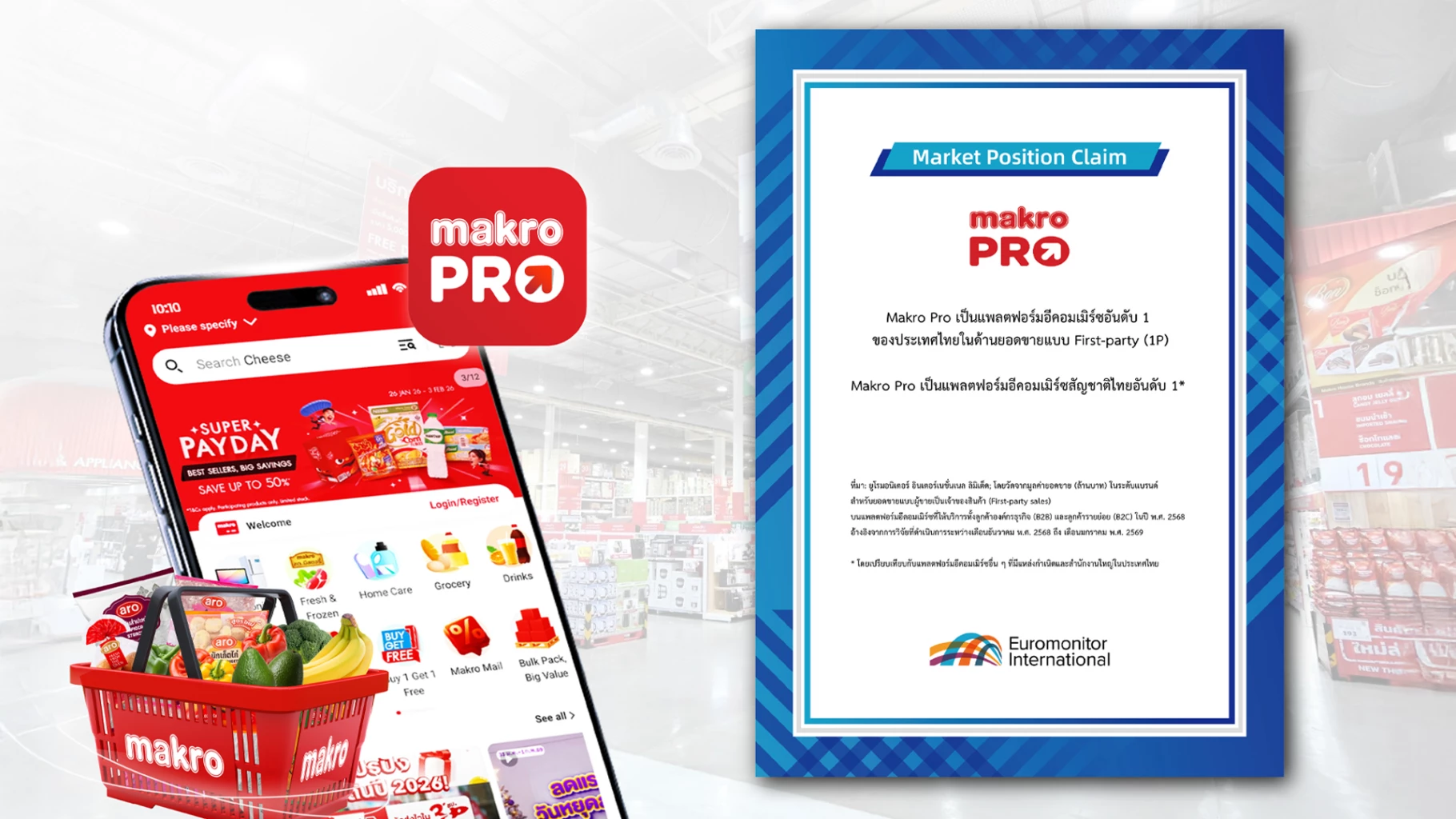 ในการจัดอันดับครั้งนี้ Euromonitor International ได้ทำการประเมินตลาดอีคอมเมิร์ซแบบ First-party ของประเทศไทย โดยมุ่งเน้นแพลตฟอร์มที่บริหารจัดการร้านค้าออนไลน์และจำหน่ายสินค้าแก่ลูกค้าโดยตรง ซึ่งจากเกณฑ์การประเมินดังกล่าว Makro PRO ได้รับการจัดอันดับให้เป็น แพลตฟอร์มอีคอมเมิร์ซอันดับ 1 ของไทยในด้านมูลค่ายอดขายแบบ First-party ประจำปี 2568 ครอบคลุมทั้งกลุ่มลูกค้า B2B และ B2C ควบคู่การเป็นแพลตฟอร์มอีคอมเมิร์ซอันดับ 1 สัญชาติไทย