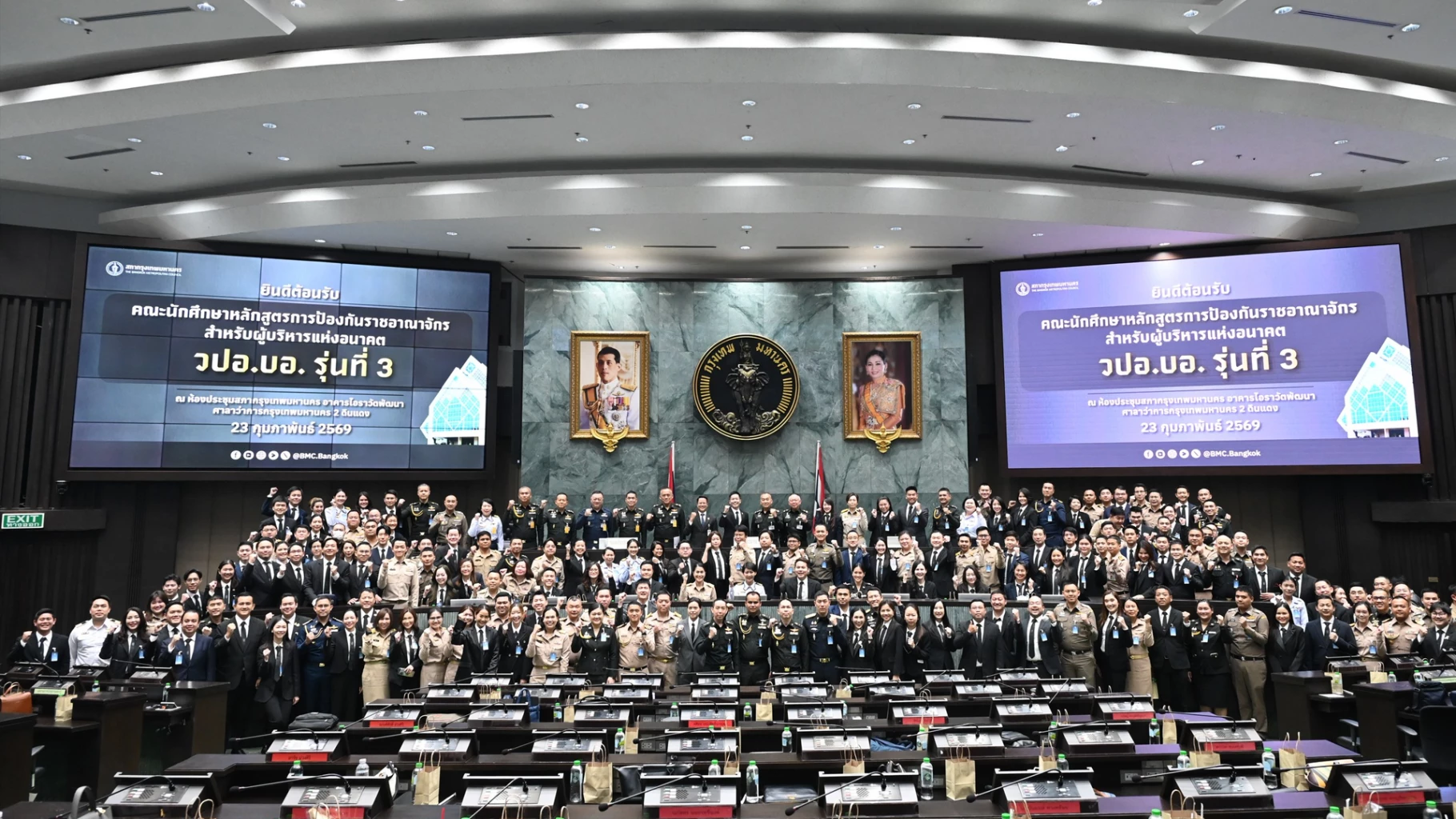 (23 ก.พ. 69) สภากรุงเทพมหานคร นำโดย นายวิพุธ ศรีวะอุไร ประธานสภากรุงเทพมหานคร และ นายเนติภูมิ มิ่งรุจิราลัย รองประธานสภากรุงเทพมหานคร คนที่หนึ่ง ให้การต้อนรับคณะนักศึกษาหลักสูตรการป้องกันราชอาณาจักรสำหรับผู้บริหารแห่งอนาคต (วปอ.บอ.) รุ่นที่ 3 พร้อมด้วยคณาจารย์และเจ้าหน้าที่วิทยาลัยป้องกันราชอาณาจักร สถาบันวิชาการป้องกันประเทศ นำโดยพลโท ทักษิณ สิริสิงห ผู้อำนวยการวิทยาลัยป้องกันราชอาณาจักร พลตรี อรรคเดช ประทีปอุษานนท์ รองผู้อำนวยการวิทยาลัยป้องกันราชอาณาจักร พลตรี กิตติภัค ทองธีรธรรม ผู้อำนวยการสำนักวิทยาการความมั่นคง วิทยาลัยป้องกันราชอาณาจักร ในการเข้าศึกษาดูงานที่สภากรุงเทพมหานครและหน่วยงานต่าง ๆ ของกรุงเทพมหานคร โดยมีวัตถุประสงค์เพื่อให้ผู้เข้ารับการศึกษาได้เรียนรู้ เข้าใจเกี่ยวกับสภาวะแวดล้อม บริบทของโลก ภูมิภาค และประเทศ รวมถึงเพิ่มพูนทักษะการคิด วิเคราะห์ วางแผน และนำเสนอแนวทางการบริหารจัดการปัญหาได้อย่างเหมาะสม ณ ห้องประชุมสภากรุงเทพมหานคร อาคารไอราวัตพัฒนา ศาลาว่าการกรุงเทพมหานคร 2 ดินแดง