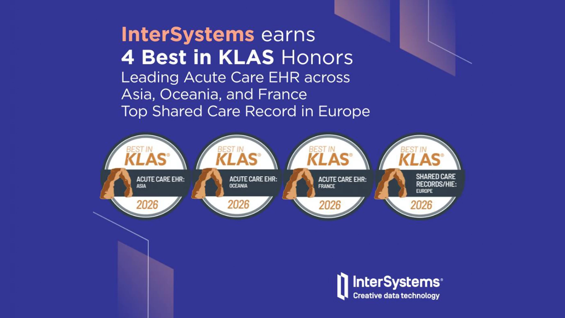 สำหรับปี 2026 InterSystems ได้รับรางวัล Global Best in KLAS ถึง 4 รางวัล ได้แก่: