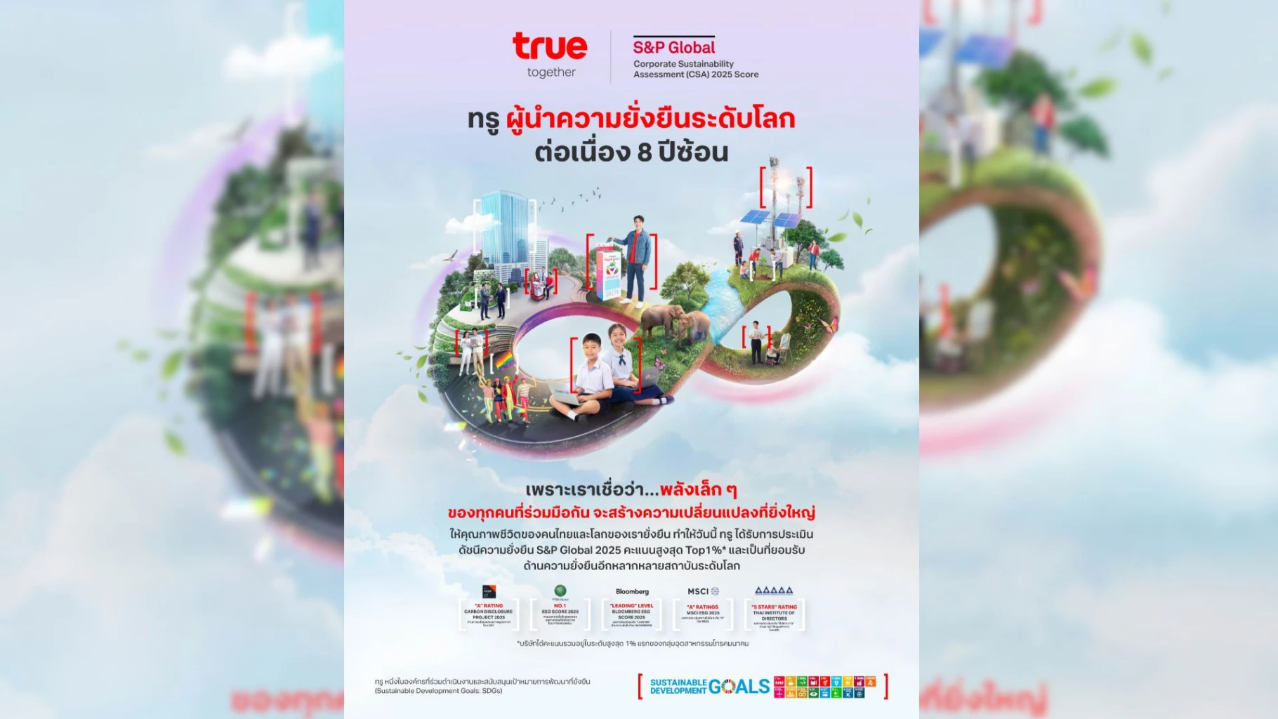 "ทรู" ผงาดเบอร์ 1 โลก 8 ปีซ้อน! ติดกลุ่ม Top 1% องค์กรยั่งยืนที่สุดจาก S&P Global