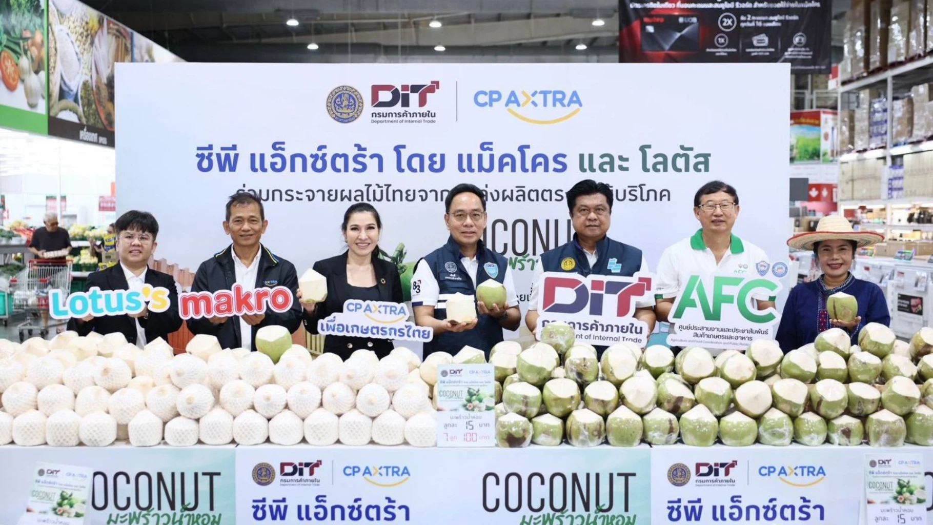 “แม็คโคร–โลตัส” จับมือกรมการค้าภายใน เดินหน้าภารกิจกระจายผลไม้จากสวนสู่ผู้บริโภคทั่วประเทศ ส่งต่อมะพร้าวน้ำหอมสด คุณภาพดี ช่วยเกษตรกรไทย