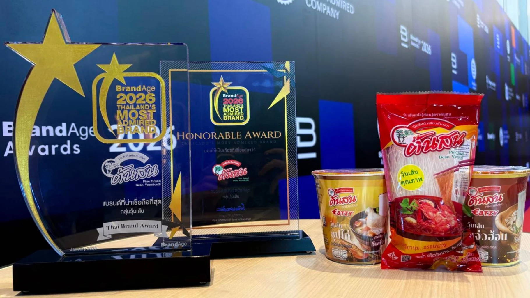 “วุ้นเส้นต้นสน” ยืนหนึ่ง! คว้ารางวัล 2026 Thailand’s Most Admired Brand และ Thai Brand Award