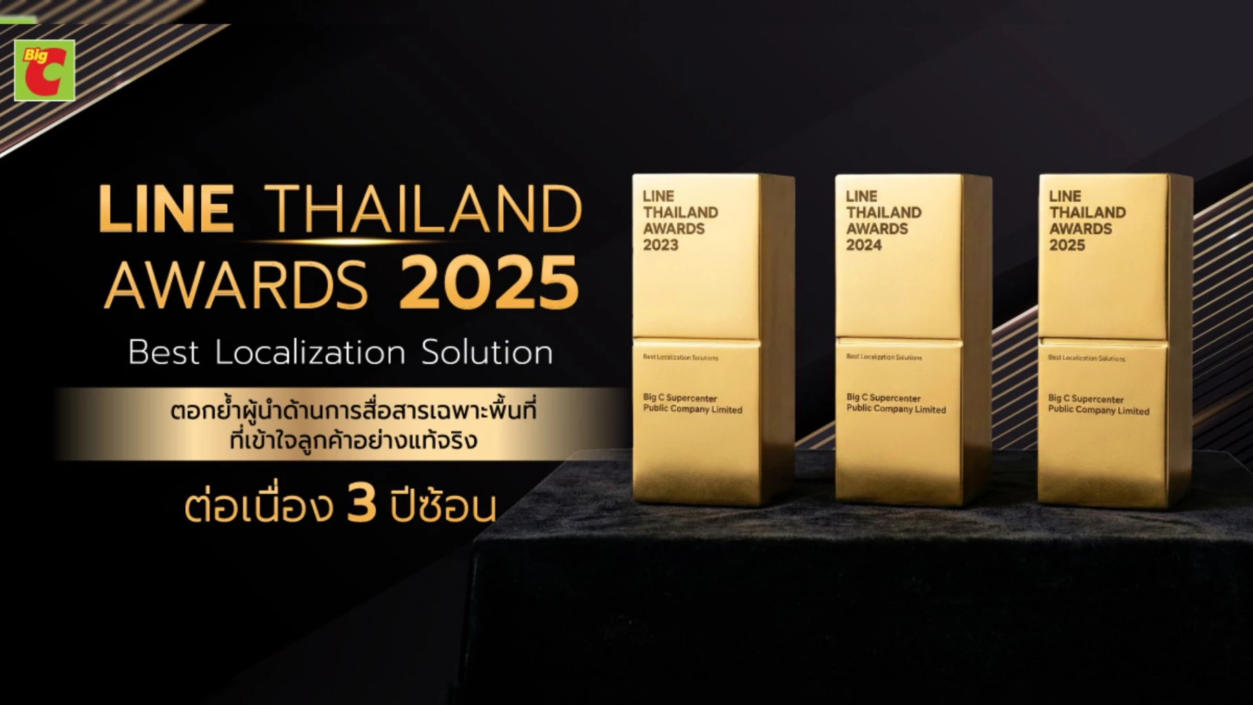 แชมป์ 3 ปีซ้อน! Big C ผงาดคว้ารางวัล "Best Localization Solution" จาก LINE Thailand Awards 2025 ตอกย้ำกลยุทธ์ "ห้างใกล้บ้าน" ที่ใช้เทคโนโลยีดิจิทัลเชื่อมต่อขาช้อปกว่า 1,600 สาขาทั่วไทย