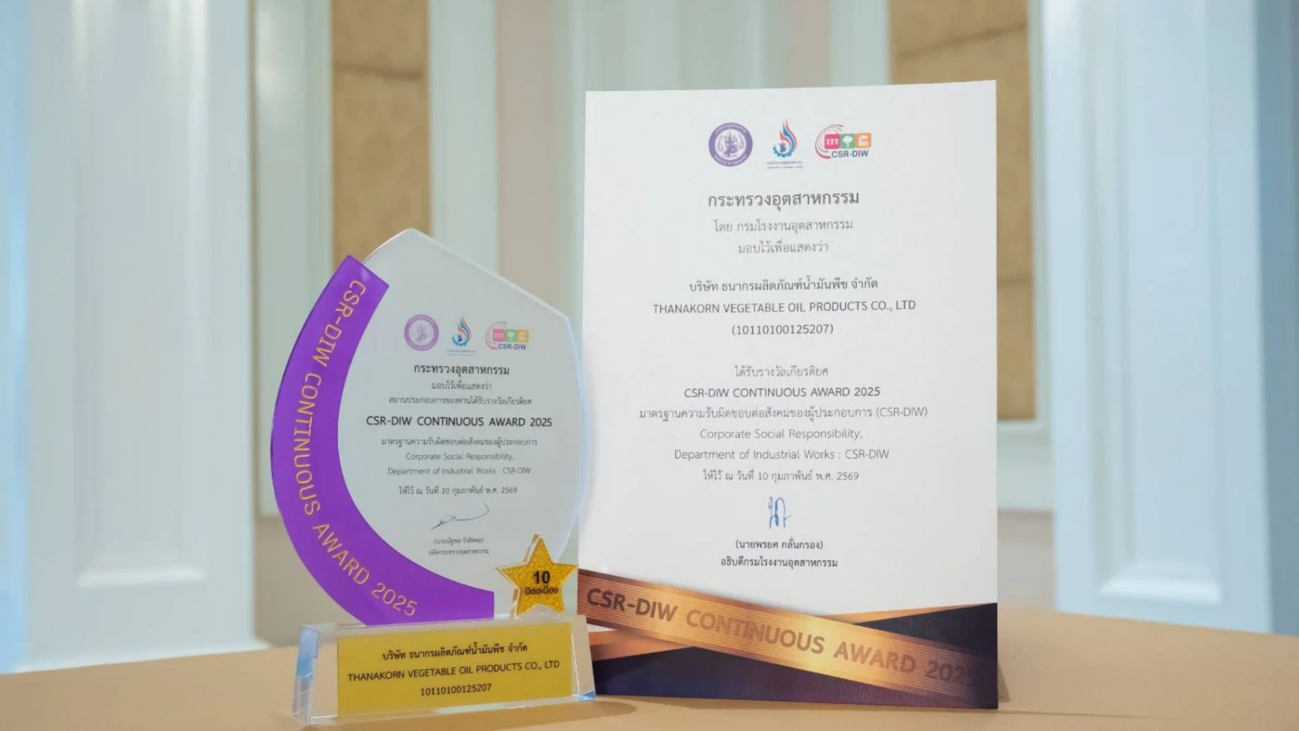นายเพชร หวั่งหลี กรรมการผู้จัดการ บริษัท ธนากรผลิตภัณฑ์น้ำมันพืช จำกัด เข้ารับรางวัล CSR-DIW Continuous Award ประจำปี 2569 จาก ดร.ณัฐพล รังสิตพล ปลัดกระทรวงอุตสาหกรรม จัดโดยกรมโรงงานอุตสาหกรรม กระทรวงอุตสาหกรรม ซึ่งมอบให้แก่สถานประกอบการที่ให้ความสำคัญในการส่งเสริมสนับสนุนการดำเนินงาน และปฏิบัติตามมาตรฐานความรับผิดชอบต่อสังคม (Corporate Social Responsibility : CSR) ได้อย่างครบถ้วน โดยงานในครั้งนี้ได้รับเกียรติจาก นายธนกร วังบุญคงชนะ รัฐมนตรีว่าการกระทรวงอุตสาหกรรม เป็นประธานในพิธีมอบโล่รางวัลดังกล่าว ณ ห้องรอยัล จูบิลี่ บอลรูม อาคารชาเลนเจอร์ อิมแพคเมืองทองธานี จังหวัดนนทบุรี เมื่อวันที่ 25 มีนาคม 2569