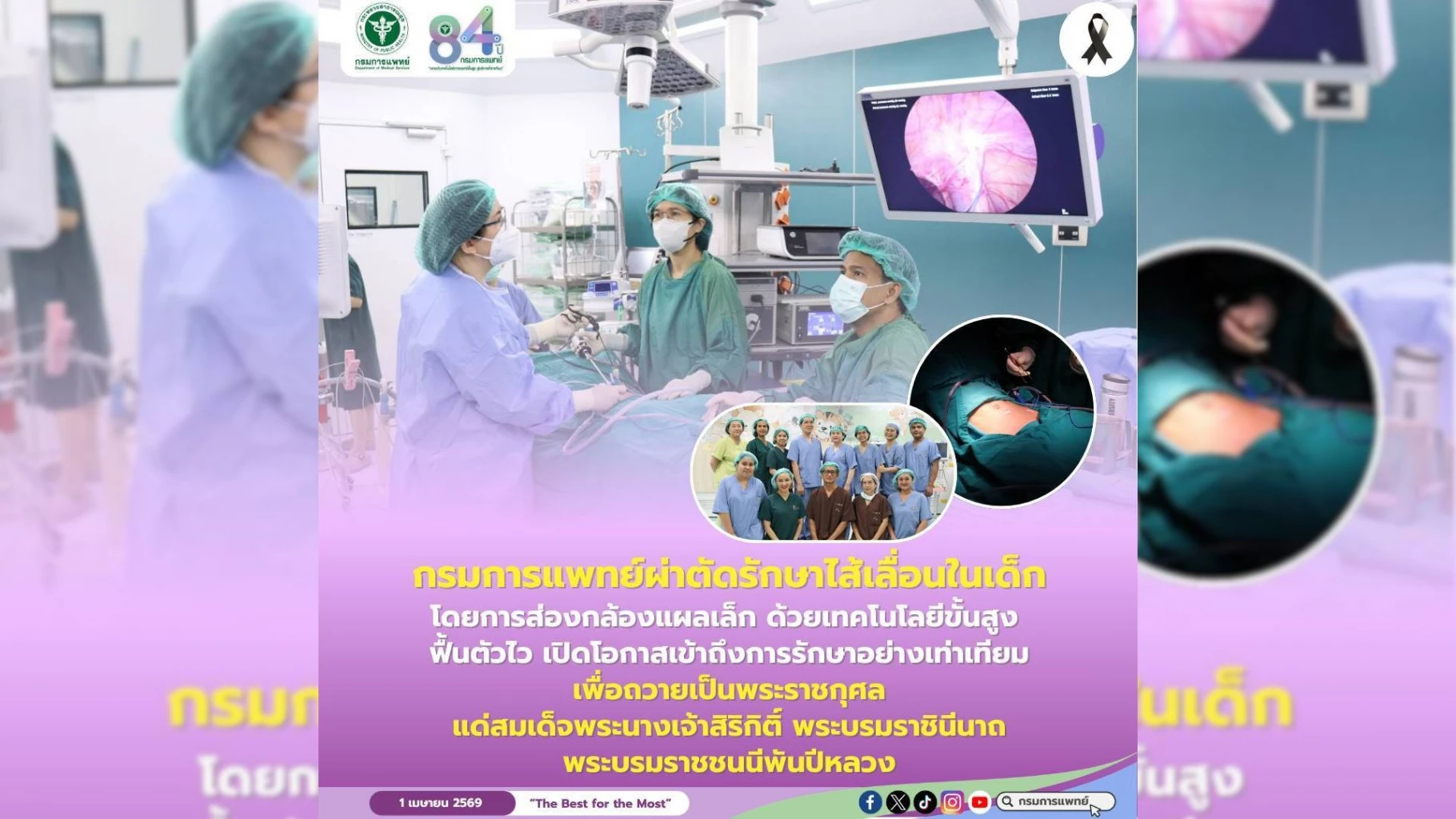 กรมการแพทย์ผ่าตัดรักษาไส้เลื่อนในเด็กโดยการส่องกล้องแผลเล็ก ด้วยเทคโนโลยีขั้นสูง ฟื้นตัวไว เปิดโอกาสเข้าถึงการรักษาอย่างเท่าเทียม เพื่อถวายเป็นพระราชกุศลแด่สมเด็จพระนางเจ้าสิริกิติ์ พระบรมราชินีนาถ พระบรมราชชนนีพันปีหลวง