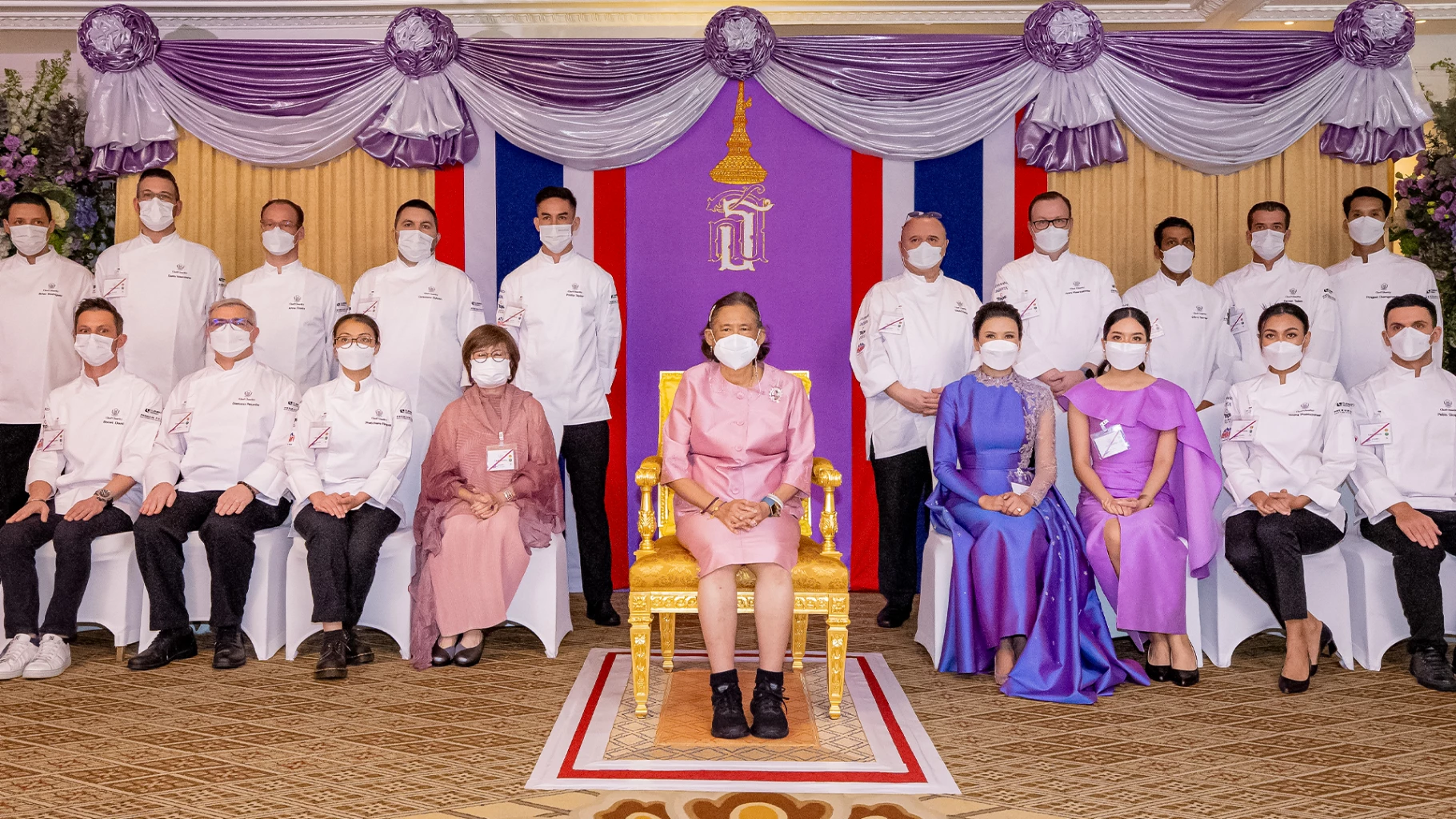 โอกาสนี้ สมเด็จพระกนิษฐาธิราชเจ้า กรมสมเด็จพระเทพรัตนราชสุดาฯ สยามบรมราชกุมารี ได้เสด็จเป็นองค์ประธานการจัดงาน Bangkok Chef Charity 2024 พร้อมทั้งได้ทรงพระกรุณา โปรดเกล้าฯ ตำส้มตำพระราชทานให้แก่ผู้มีจิตศรัทธาบริจาคเงินสมทบทุนการกุศล จำนวน 20 คน สำหรับการรังสรรค์เมนูสุดพิเศษในปีนี้นอกจากได้นำวัตถุดิบนำเข้าชั้นเลิศแล้ว ยังได้นำข้าวหอมมะลิ “จัน-กะ-ผัก” โดยปลูกเป็นระบบเกษตรอินทรีย์ หลีกเลี่ยงการใช้สารเคมี มาสร้างสรรค์เมนูทั้งหมด 11 คอร์ส พร้อมด้วย 16 คานาเป้ อาทิ ปลาคอดทอดกับควินัวพร้อมผักดองและซอสเสฉวน กุ้งคาราบิเนียรอสนึ่งเสิร์ฟพร้อมผักกาดหอมก้านและมะกอกเขียว ปลาหมึกจากพังงายัดไส้สมุนไพรและซอสน้ำมันดอกคำฝอย ไก่ออร์แกนิกม้วนยัดไส้พร้อมพิสตาชิโอ ซอสฟัวกราส์ เป็นต้น