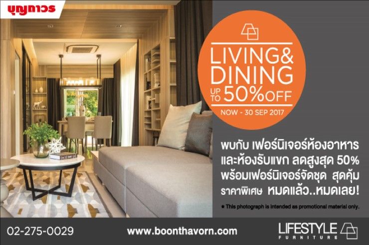 บุญถาวร ไลฟ์สไตล์ เฟอร์นิเจอร์ โปรโมชั่นพิเศษสุดคุ้มแห่งปี LIFESTYLE Living & Dining Sale 2017 ลดสูงสุดถึง 50% ตั้งแต่วันนี้ - 30 กันยายน 2560