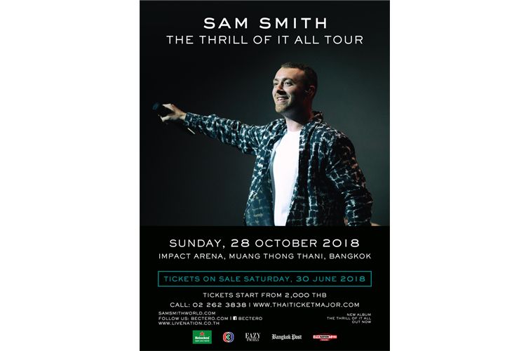 ครั้งแรกในเมืองไทยกับคอนเสิร์ตใหญ่เต็มรูปแบบ ของนักร้องเสียงคุณภาพจากเกาะอังกฤษ แซม สมิธ (Sam Smith) กับ "แซม สมิธ : เดอะ ธริล ออฟ อิท ออล ทัวร์" (SAM SMITH : The Thrill Of It All Tour) ซึ่งจะเดินทางมาเปิดการแสดงที่ประเทศไทยในวันอาทิตย์ที่ 28 ตุลาคม 2561 ณ อิมแพ็ค อารีน่า เมืองทองธานี ราคาบัตรเข้าชมเริ่มต้นที่ 2,000 บาท เปิดจำหน่ายวันที่ 30 มิถุนายนนี้เป็นต้นไป ที่ไทยทิคเก็ตเมเจอร์ทุกสาขา หรือทางเว็บไซต์ www.thaiticketmajor.com สำหรับลูกค้าบัตรเครดิตซิตี้ (Citi) สามารถซื้อบัตรล่วงหน้าได้ก่อนใครในวันที่ 27 มิถุนายน ตั้งแต่เวลา 10.00 น จนถึงวันที่ 28 มิถุนายน เวลา 22.00 น. และสมาชิก ไลฟ์ เนชั่น ซื้อบัตรล่วงหน้าได้ในวันที่ 29 มิถุนายน ตั้งแต่เวลา 10.00 น. จนถึง เวลา 22.00 น.