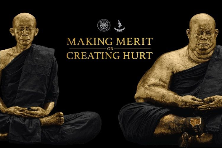 การทำบุญถวายภัตตาหารที่เกิดจากความศรัทธา แต่ไม่คำนึงถึงสุขภาพของพระสงฆ์ อาจกลายเป็นทำบาปโดยไม่รู้ตัว ประติมากรรมพระสงฆ์จำลอง (รูปด้านบน) ในแคมเปญ “ทำบุญหรือทำบาป (Making Merit or Creating Hurt)” ซึ่งดำเนินมาตั้งแต่ต้นเดือนเมษายนที่ผ่านมา จะเปลี่ยนความเชื่อการตักบาตรของศาสนาพุทธไปในทางที่ถูกต้อง โดยในอาทิตย์แรกของเดือนเมษายน ประชาชนจะได้พบกับรูปปั้นของพระสงฆ์ที่รูปร่างสมส่วน แข็งแรง ได้ตามวัด ชุมชน และสถานที่สำคัญ และเมื่อเหล่าพุทธศาสนิกชนกลับมาทำบุญเข้าวัดอีกครั้งในอีก 2 อาทิตย์ให้หลังซึ่งเป็นช่วงเทศกาลสงกรานต์ ก็จะได้พบกับประติมากรรมพระที่มีรูปร่างอ้วน สีหน้าอมทุกข์ และบริเวณเท้ามีรอยแผลจากโรคเบาหวานแทน