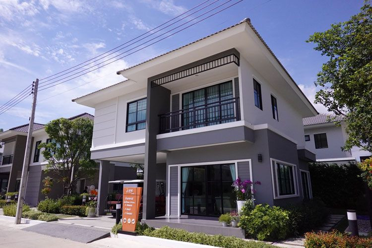 - แบบบ้าน “ราชพฤกษ์” เป็นบ้านเดี่ยว 2 ชั้น 3 ห้องนอน 3 ห้องน้ำ 1 ห้องครัว 1 ห้องรับแขก 2 ที่จอดรถ เนื้อที่ 50 ตร.ว. พื้นที่ใช้สอย 158 ตร.ม. ราคาขาย 3.85 ล้านบาท