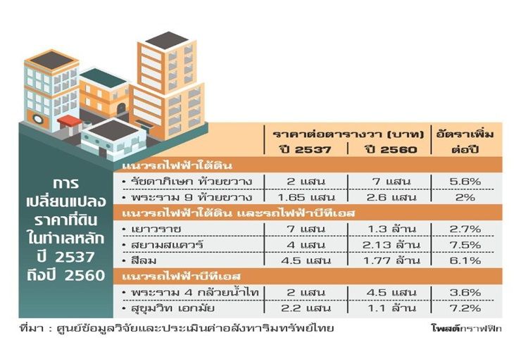 ปฏิเสธไม่ได้ว่าโครงการรถไฟฟ้ามีส่วนสำคัญในการผลักดันให้ราคาที่ดินและอสังหาริมทรัพย์รอบข้างปรับสูงขึ้น