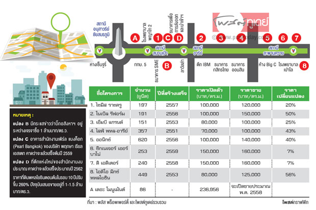 อย่างไรก็ตาม เนื่องจากแหล่งงานย่านนี้เป็นแหล่งงานของบริษัทคนไทยเป็นส่วนใหญ่ ไม่ได้เป็นชุมชนที่อยู่อาศัยของกลุ่มต่างชาติ ความต้องการอยู่อาศัยเป็นของกลุ่มคนไทยเป็นหลัก ทำให้กลุ่มผู้ลงทุนสนใจซื้อลงทุนย่านนี้ไม่มากนัก ราคาจึงไม่ได้ขยับแรง หากเมื่อเทียบฝั่งสุขุมวิทที่ปีนี้เปิดฉากราคาเริ่มต้นไม่ต่ำกว่า 2.5-3 แสนบาท/ตร.ม.