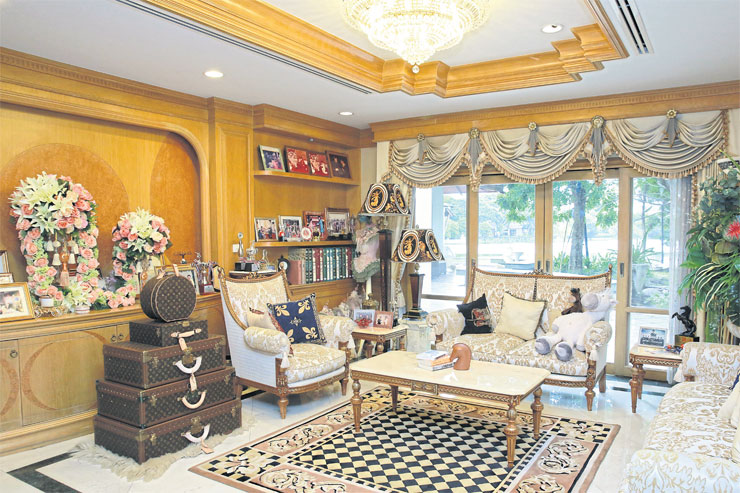 นอกจากมุมในห้องรับแขกนี้จะโดดเด่นด้วยกระเป๋าแบรนด์ หลุยส์ วิตตอง หลายขนาดของคุณแม่ตั้งประดับในห้องแล้ว ยังมีมุมวางเหรียญรางวัลต่างๆ ของลูกๆ ที่เก่งกีฬาแต่ละชนิดคล้ายๆ กัน ตั้งประดับเป็นที่ภาคภูมิใจของคุณพ่อคุณแม่ดูเพลินตาเชียวละค่ะ