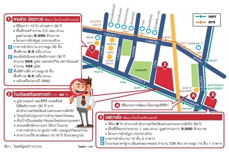 ส่วนแปลงถัดมาที่เพิ่งเปิดแผนพัฒนาเบื้องต้นออกมาแล้ว คือ ที่ดิน 13 ไร่ ตรงพระราม 4-พญาไท หรือสามย่าน ซึ่งเป็นที่ดินในความดูแลของจุฬาลงกรณ์มหาวิทยาลัย มีบริษัท ทีซีซี แอสเซ็ทส์ (ประเทศไทย) เป็นผู้ประมูลได้สิทธิการเช่า 30 ปี โดยให้โกลเด้นแลนด์เป็นผู้ดำเนินการก่อสร้าง ภายใต้บริษัทร่วมทุนชื่อ เกษมทรัพย์ภักดี พัฒนาเป็นโครงการมิกซ์ยูสชื่อ สามย่าน มิตรทาวน์