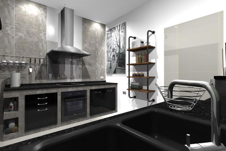 สำหรับโครงสร้างครัวปูนจะใช้วิธีก่ออิฐฉาบปูน เพื่อให้ได้งานในสไตล์ลอฟต์ อาจจะเลือกเป็นปูนขัดมัน เติมแต่งด้วยเฟอร์นิเจอร์ครัวในโทนสีที่เข้ากัน โดยมากคือ โทนสีขาว เทา ดำ น้ำตาล