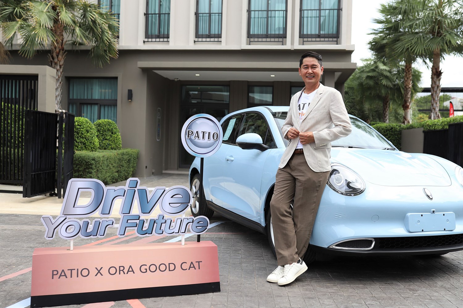 คุณธีระ ทองวิไล กรรมการผู้จัดการกลุ่มธุรกิจทาวน์โฮม บริษัท พฤกษา เรียลเอสเตท จำกัด (มหาชน) ร่วมกับ คุณศิริวรรณ พิริยะเมธากุล กรรมการผู้จัดการ บริษัท แอมแพค โฮลดิ้ง จำกัด (อมรรัชดา) ร่วมมอบประสบการณ์สุดพิเศษ ในงาน Drive Your Future เหนือกว่าทุกประสบการณ์ให้กับลูกค้าโครงการพาทิโอ 3 ทำเล เยี่ยมชมโครงการพร้อมทดลองขับรถยนต์ไฟฟ้า ORA GOOD CAT จากค่าย เกรท วอลล์ มอเตอร์ (GWM) รถยนต์ไฟฟ้า 100% ที่โดดเด่นด้วยดีไซน์ Retro Futuristic ที่แตกต่างไม่ซ้ำใคร นอกจากนี้ลูกค้าที่จอง พาทิโอ ภายในงานยังได้รับข้อเสนอสุดพิเศษ PATIO X ORA GOOD CAT รวมมูลค่ากว่า 2,000,000 บาท
