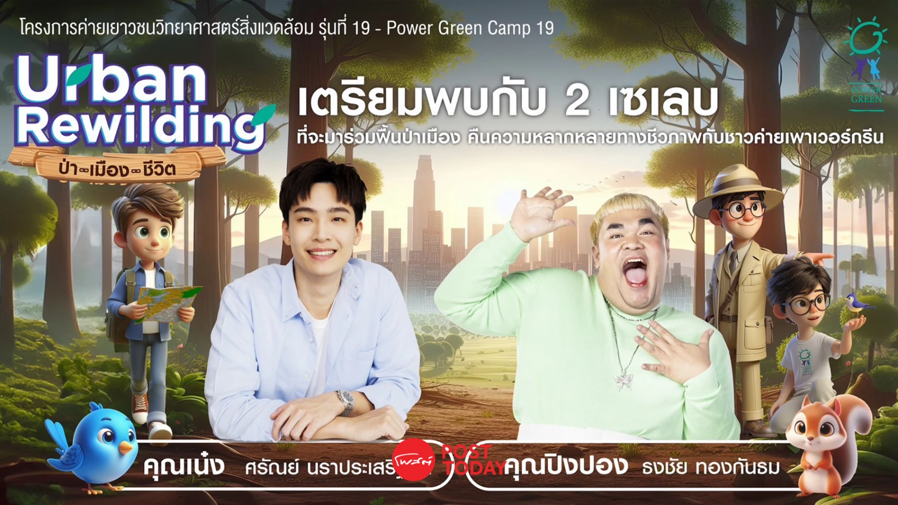 บ้านปูและมหิดล ชวนน้อง ม.ปลาย-ปวช. ทั่วประเทศ สมัครเข้าร่วมค่ายเยาวชนวิทยาศาสตร์สิ่งแวดล้อม (Power Green Camp) ครั้งที่ 19 ภายใต้แนวคิด “Urban Rewilding: ป่า - เมือง - ชีวิต” ปีนี้มี 2 เซเลบ “เน๋ง-ศรัณย์ นราประเสริฐกุล” และ “ปิงปอง-ธงชัย ทองกันธม” ร่วมฟื้นป่าเมือง
